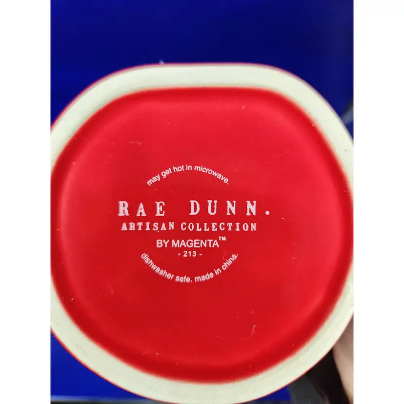 Rae Dunn Artisan Collection by Magenta SANTA'S HELPER mug Holds 16 fluid ounces Mug measures approximately 4 3/4 inches (8 inches with lid). Mouth opening is 3 1/4 inches In excellent condition - no chips or cracks