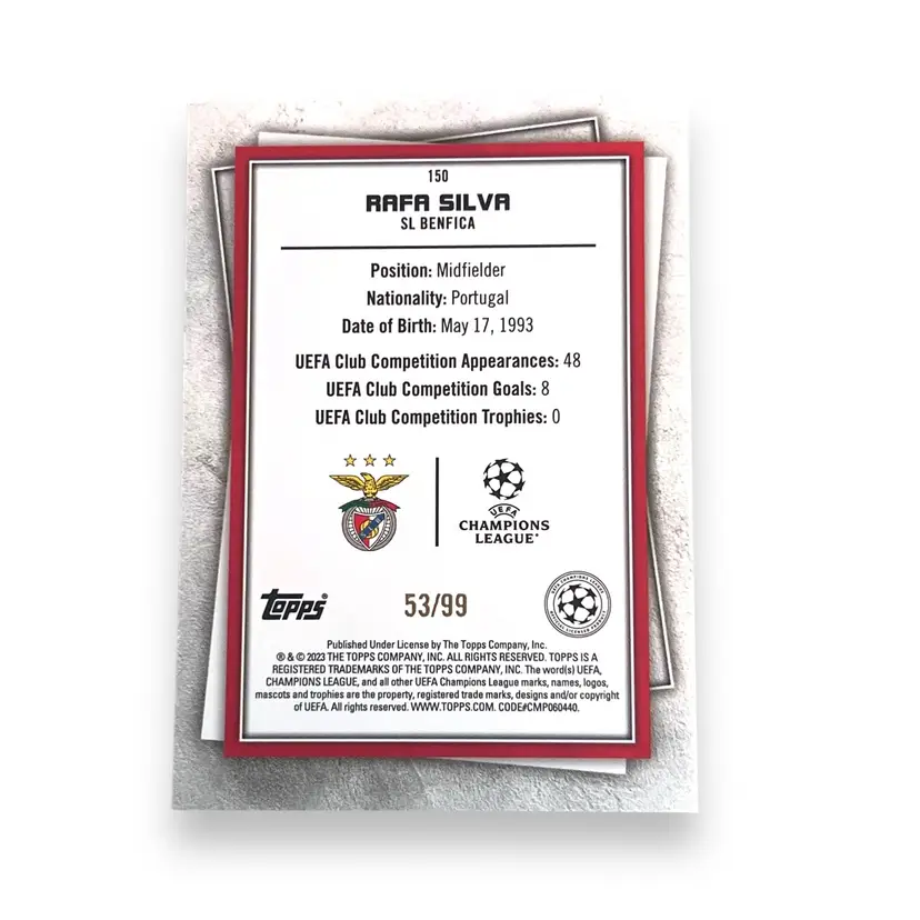 Here We Have a Rafa Silva Ultra Rare Purple 53/99 Image Variation 2023 Topps UEFA Superstars