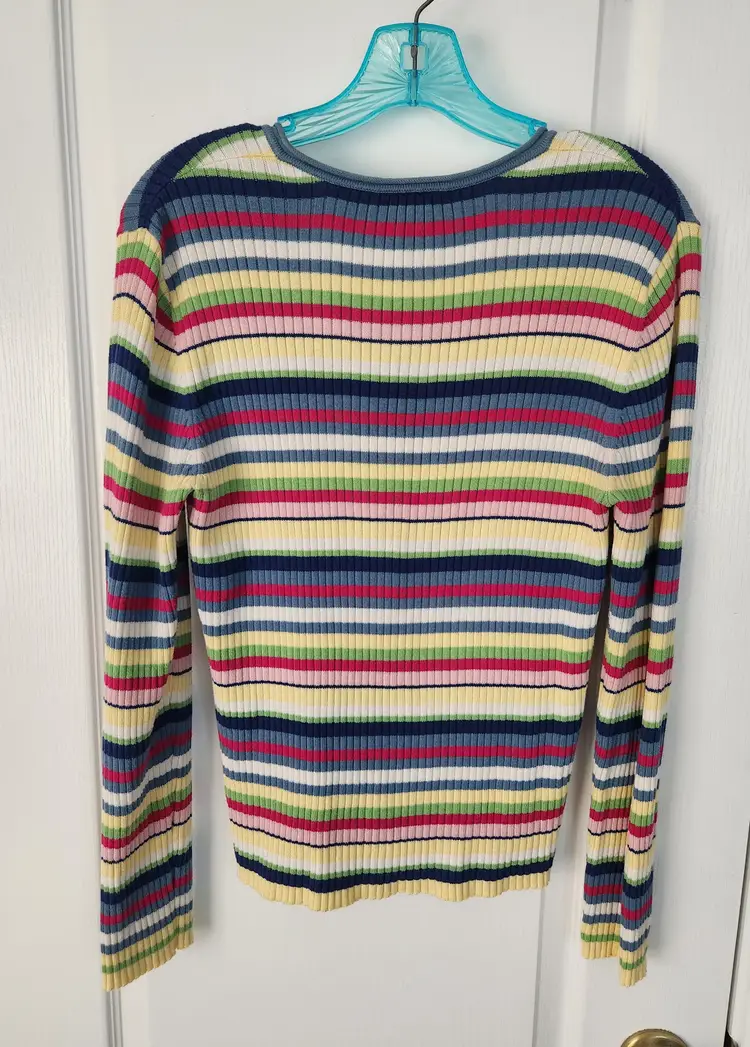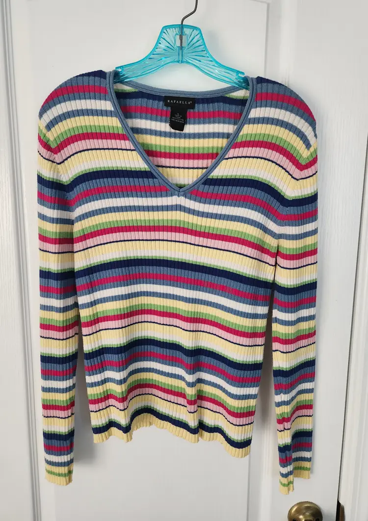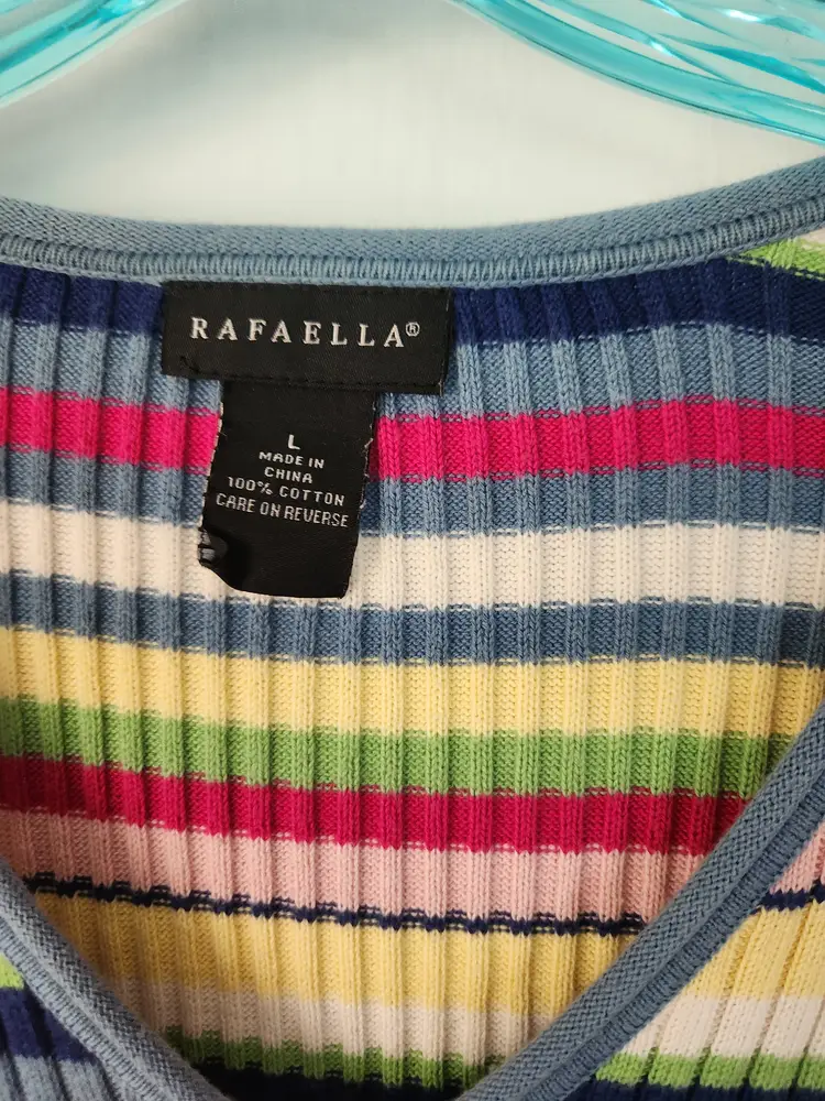 Rafaella sweater, size large. Made of 100% cotton. This sweater is so pretty. Wear it with jeans or dress pants. Either way, it will look great. It is very good condition. Measurements: Sleeve length-24 1/2 inches Pit to pit-18 inches Length- 23 inches