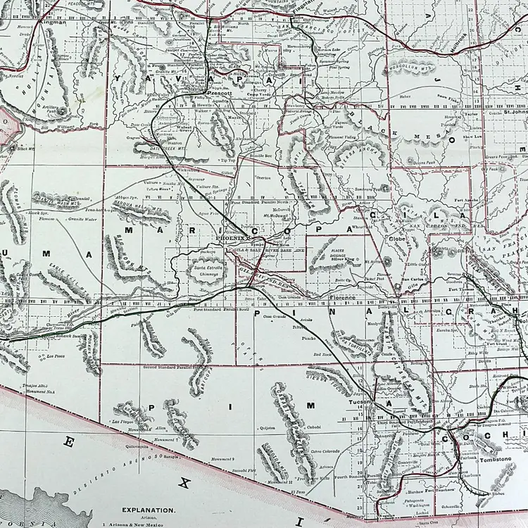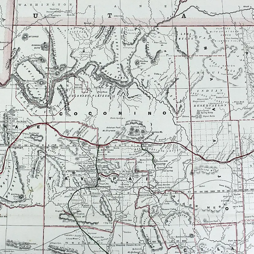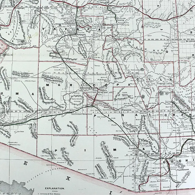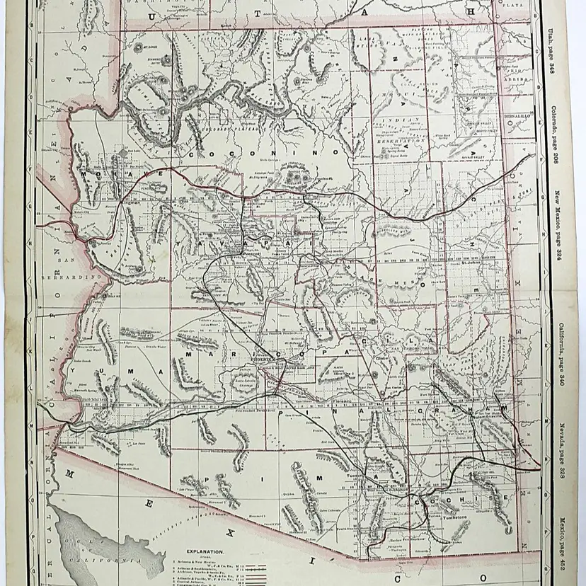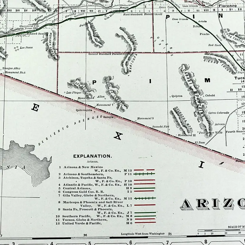 Large map showing Railroad/Railway routes through the State of Arizona. Wonderful detail. Great condition with only minor small edge faults. BoxMap 1, Folder AB #3