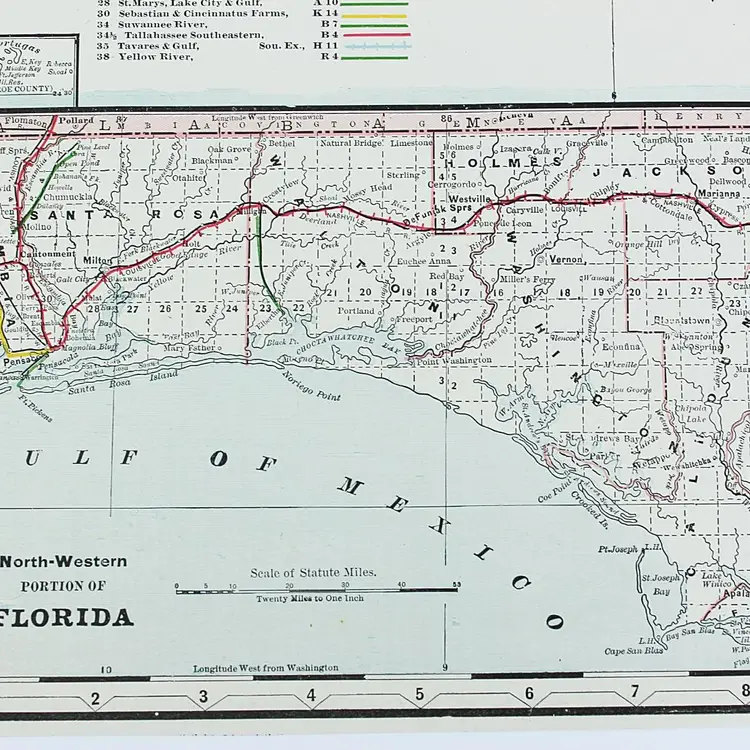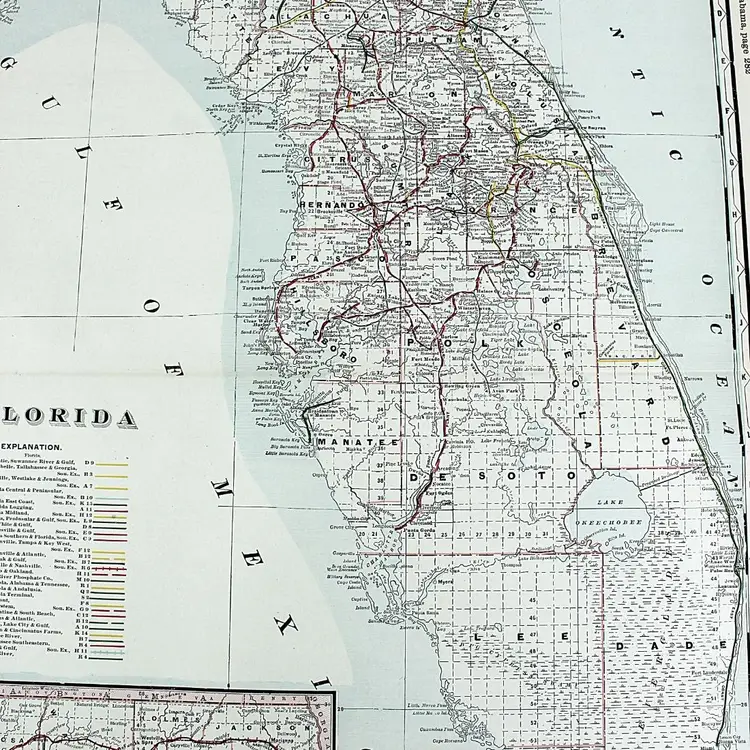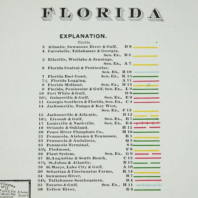Large map showing Railroad/Railway routes through the State of Florida. Wonderful detail. Great condition with only minor small edge faults. BoxMap 1, Folder AB #1