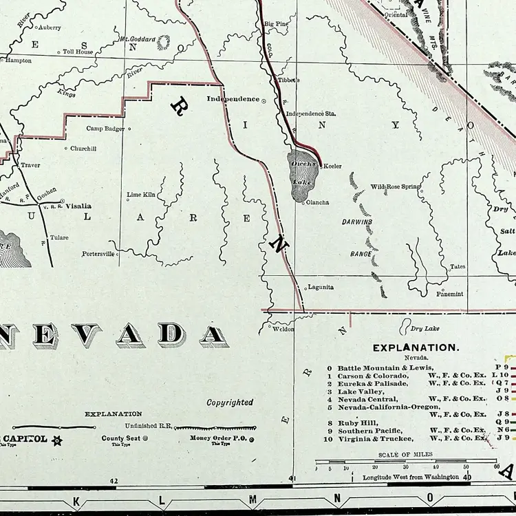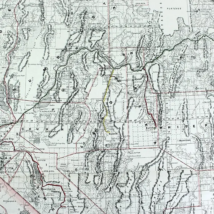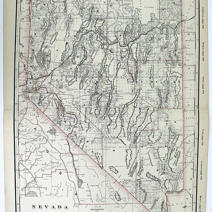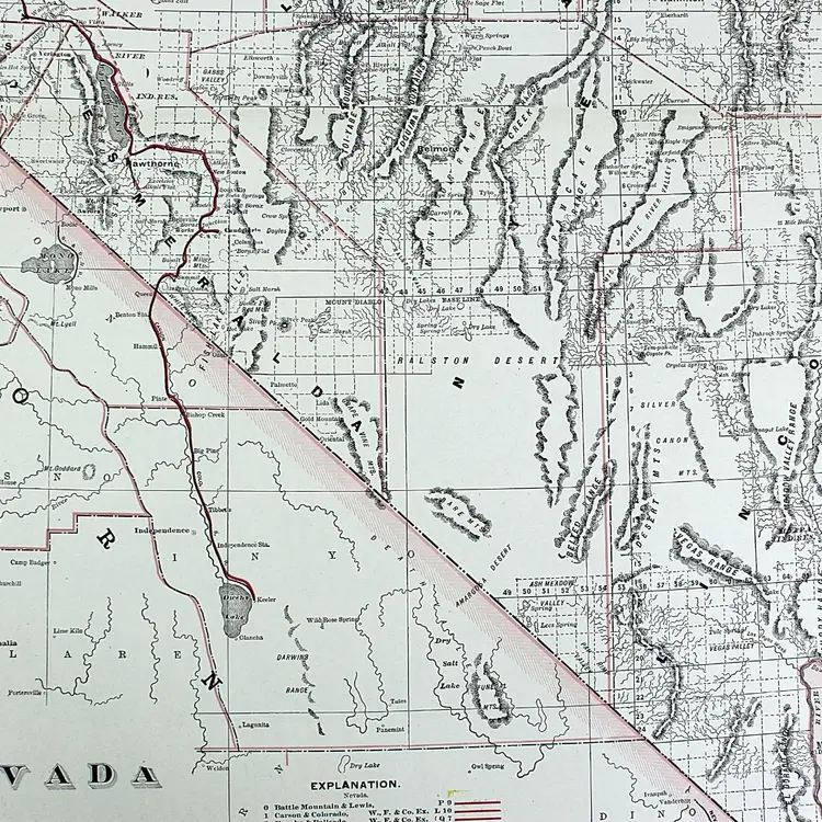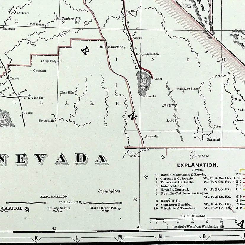 Large map showing Railroad/Railway routes through the State of Nevada. Wonderful detail. Great condition with only minor small edge faults. BoxMap 1, Folder AB #7