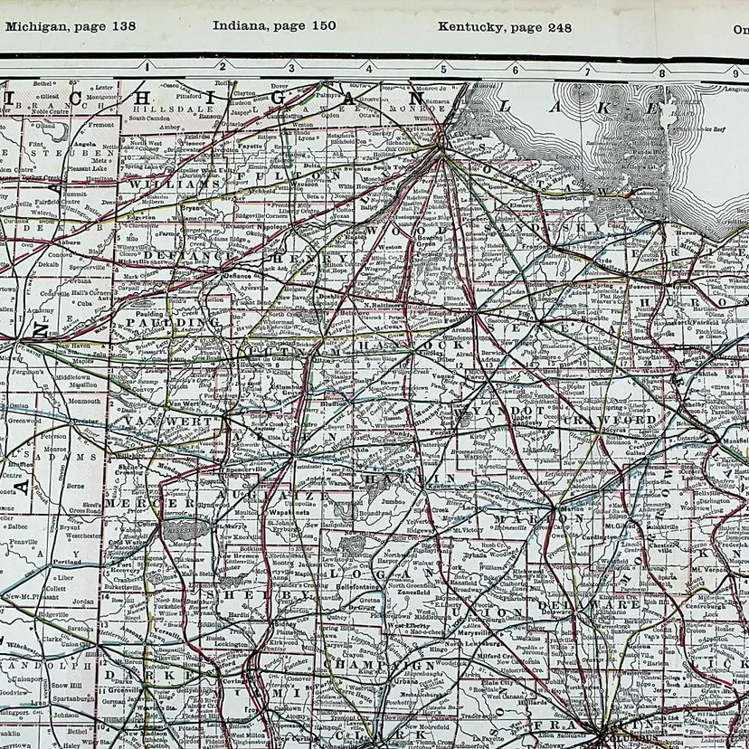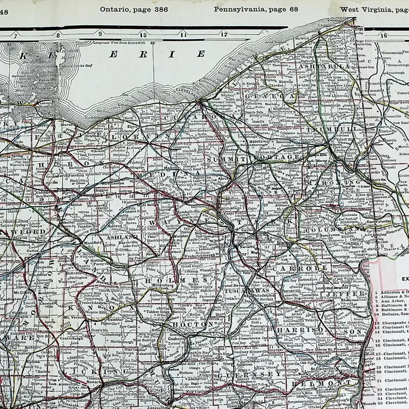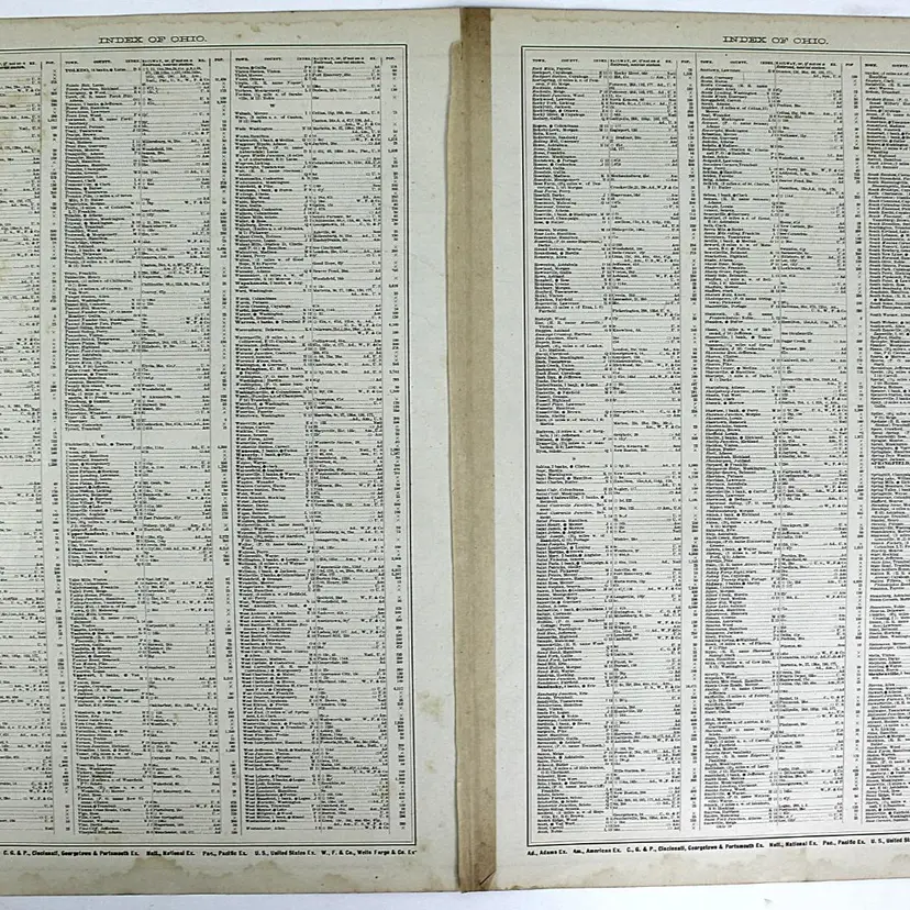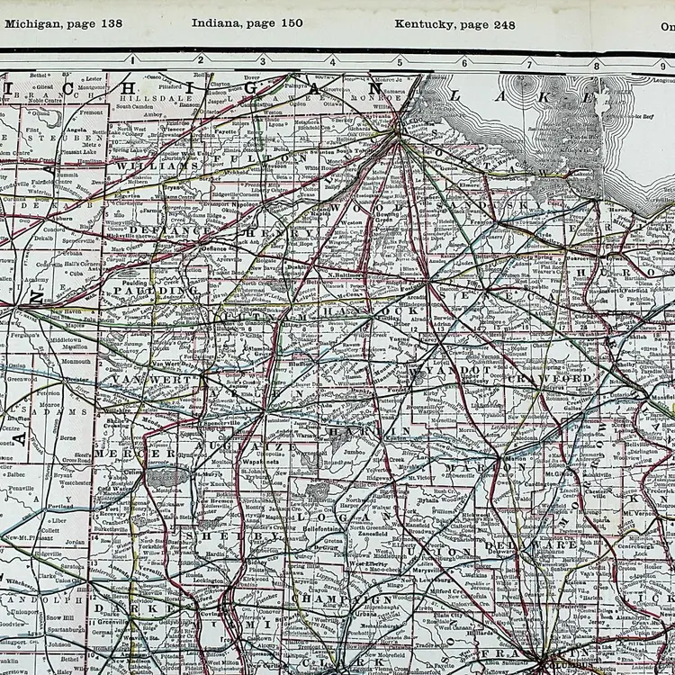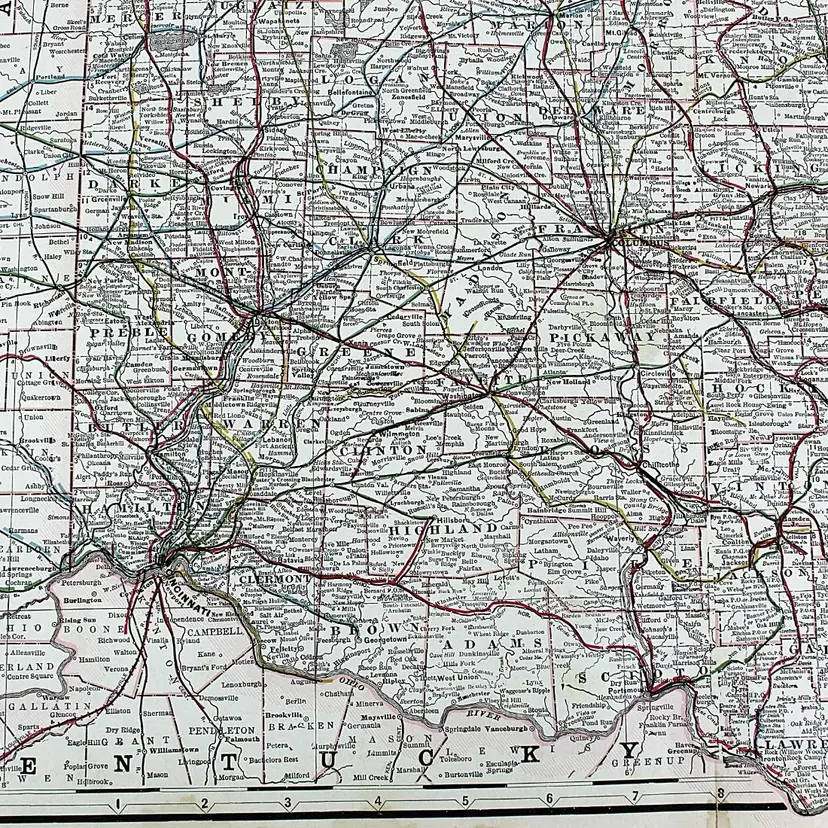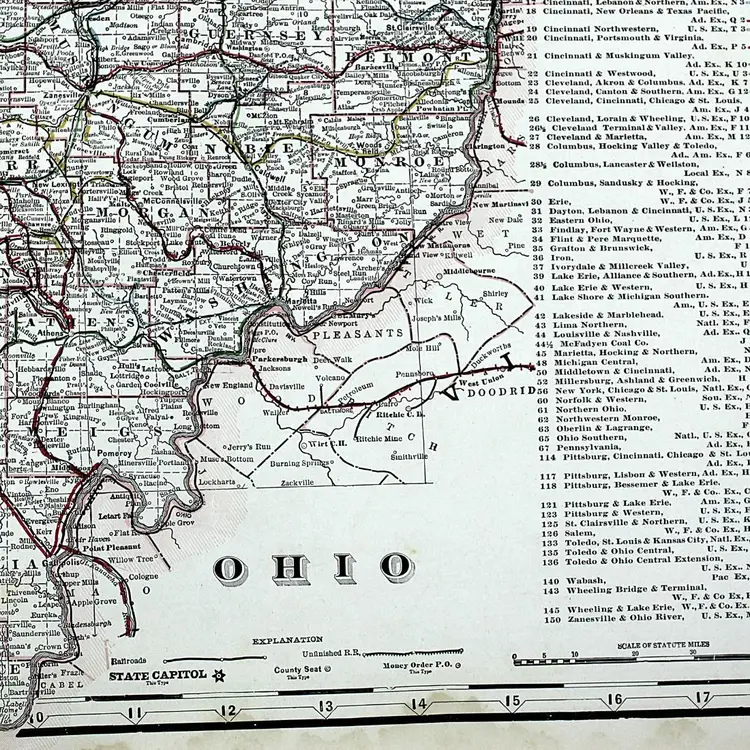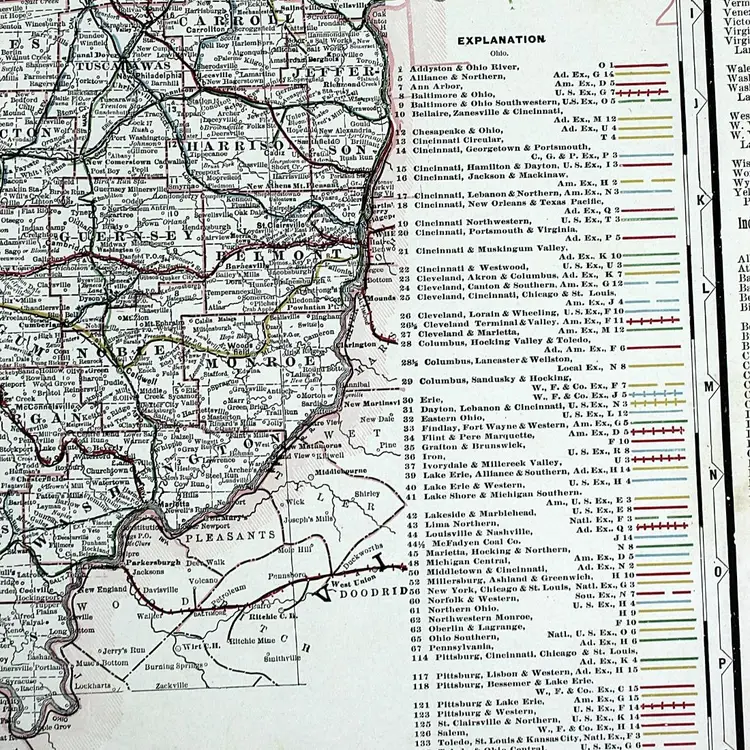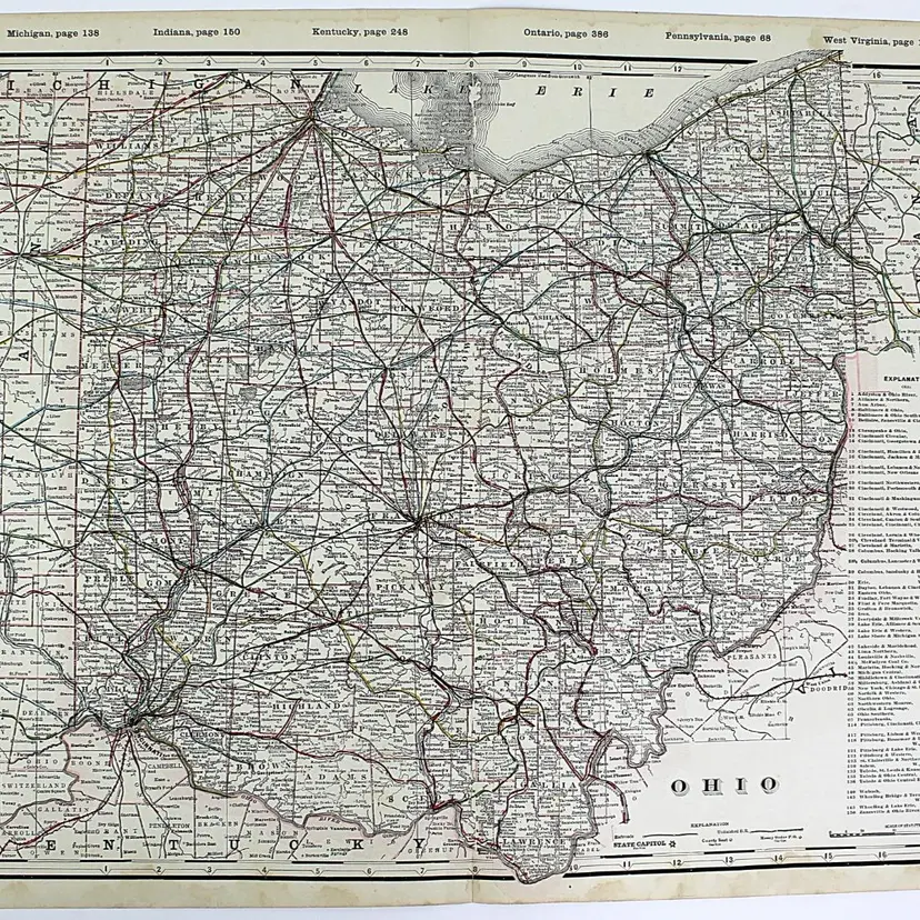 Large map showing Railroad/Railway routes through the State of Ohio. Wonderful detail. Great condition with only minor small edge faults. BoxMap 1, Folder AB #9