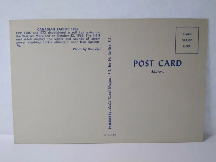 Unit of Sale: Single Unit Era: Post-War (1945-Now) Original/Licensed Reprint: Original Occasion: Historical Country/Region of Manufacture: United States Material: Paper Theme: Transportation, Train, Railroad, Locomotive Number of Items in Set: 1 Type: Printed (Lithograph) Artist: Unknown Subject: Railway Brand/Publisher: Audio Visual Postage Condition: Unposted Year Manufactured: 1970
