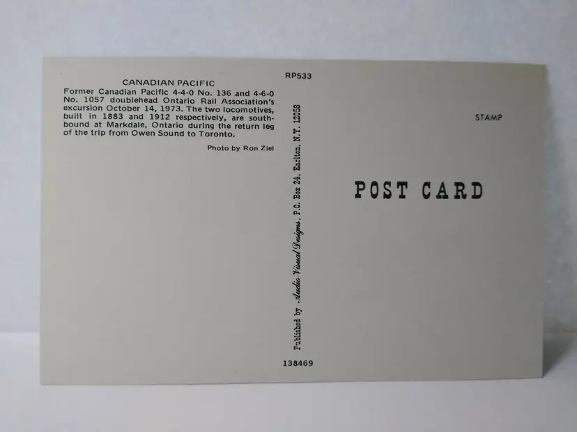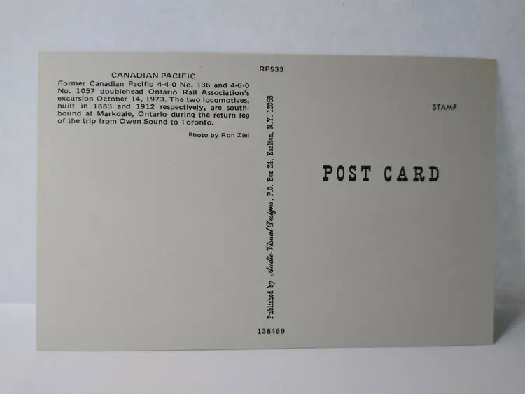 Type: Printed (Lithograph) Number of Items in Set: 1 Original/Licensed Reprint: Original Time Period Manufactured: 1960's-1980's Unit of Sale: Single Unit Era: Post-War (1945-Now) Artist: Unknown Country/Region of Manufacture: United States Material: Paper Theme: Railroad, Steam Train, Locomotive, Railway, Transportation, Train Features: Chrome Subject: Railway Postage Condition: Unposted Brand/Publisher: Audio Visual Designs Occasion: Railroad Card Year Manufactured: 1970