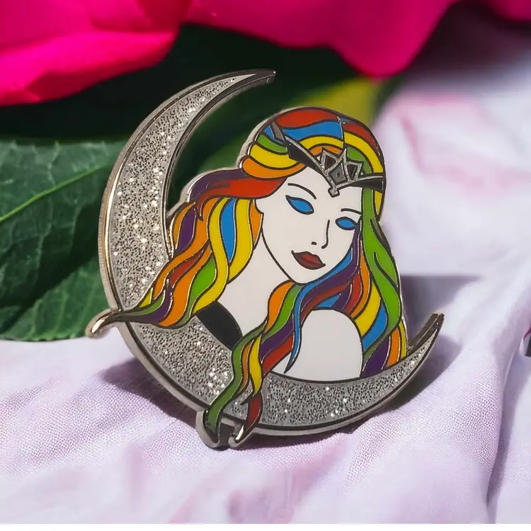 1.5x1.5 inch goddess enamel pin, designed by Saki