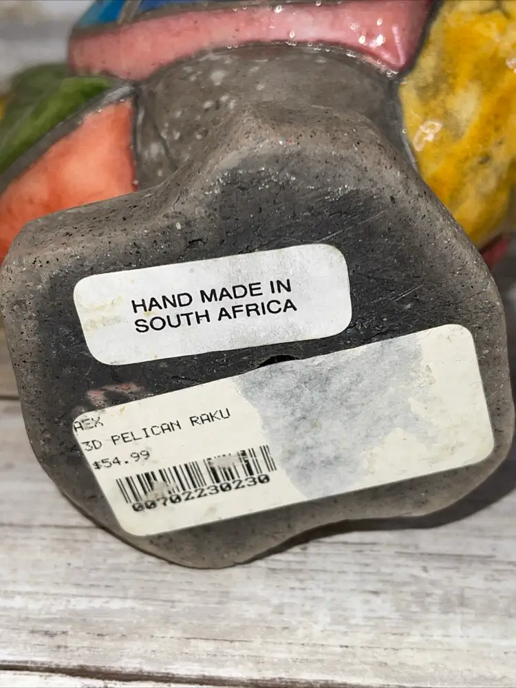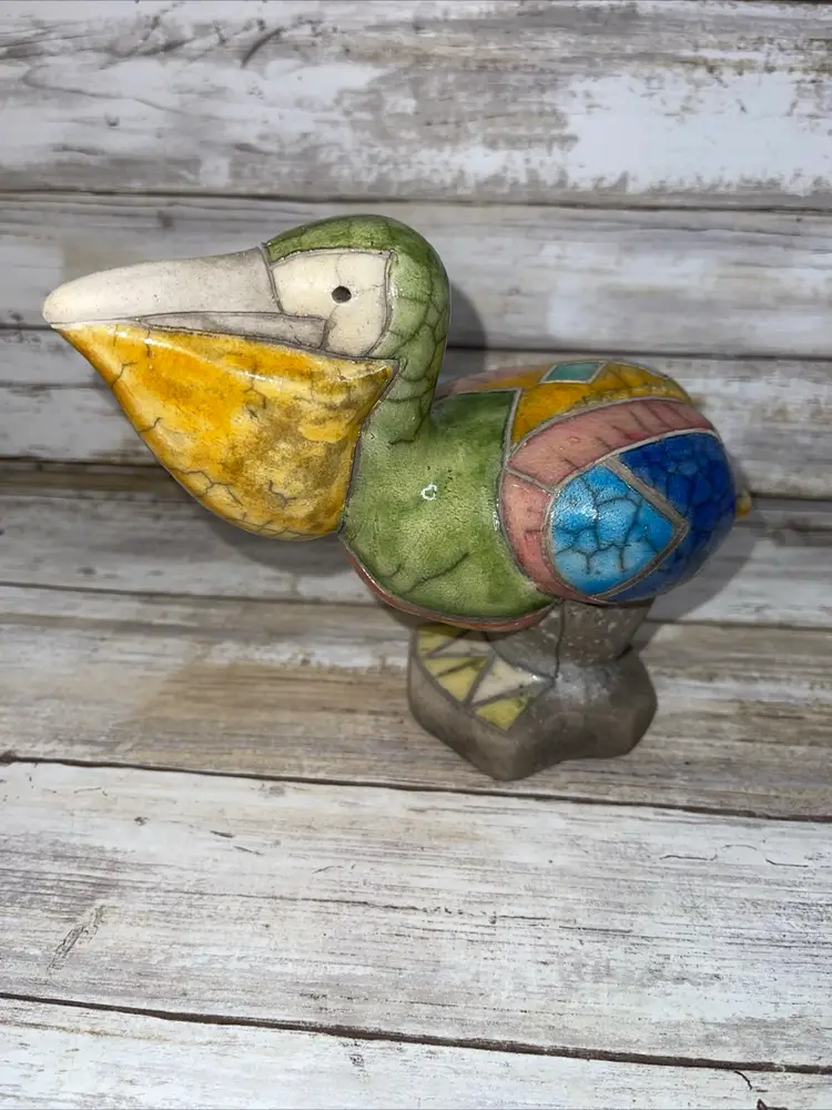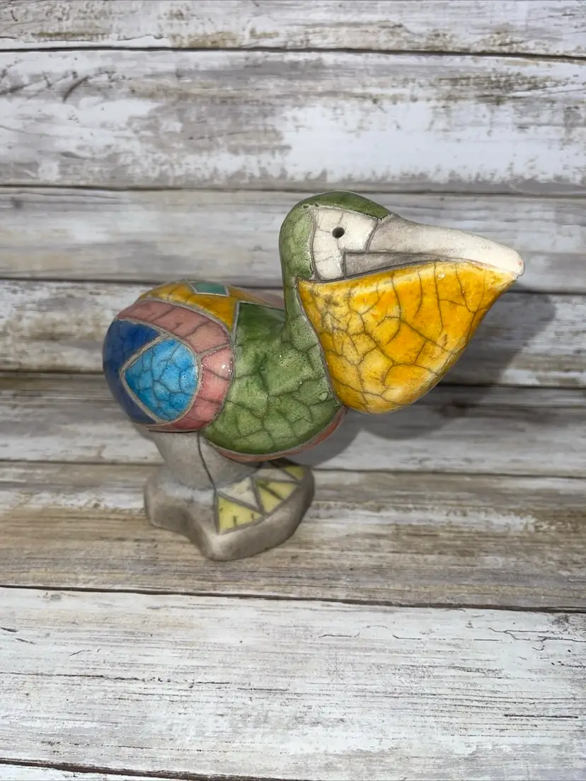 Raku Art Pottery Blocked Pelican Bird Florida South Africa