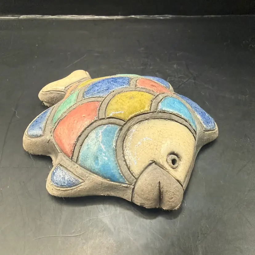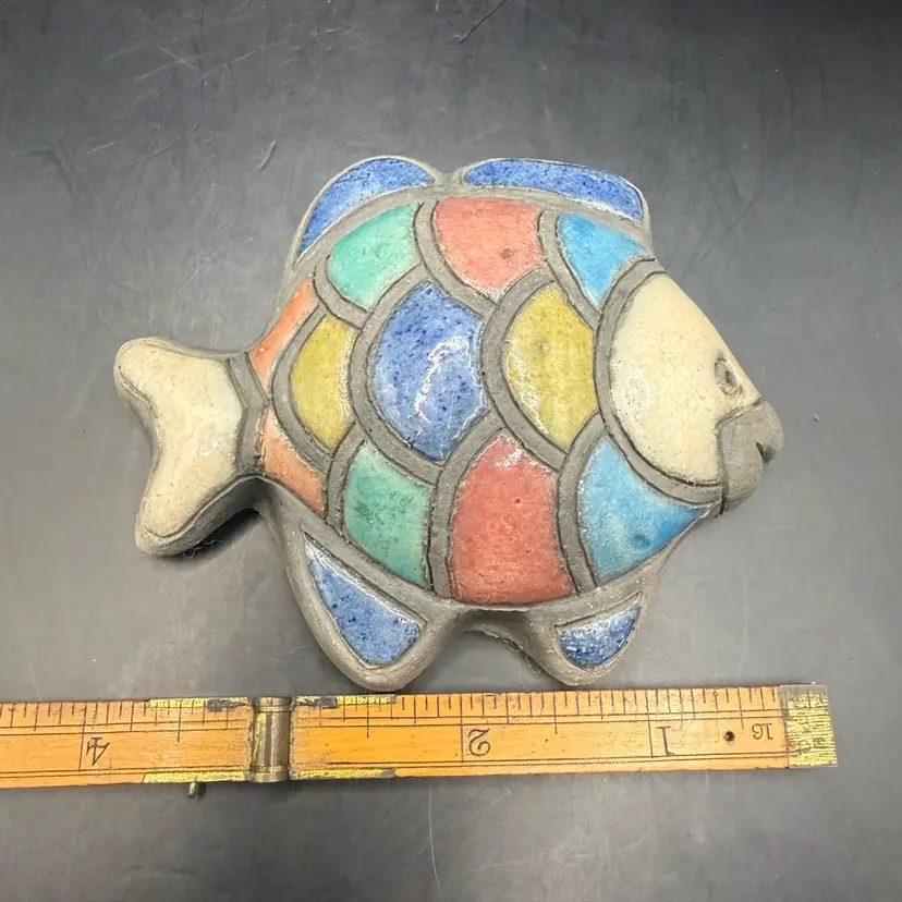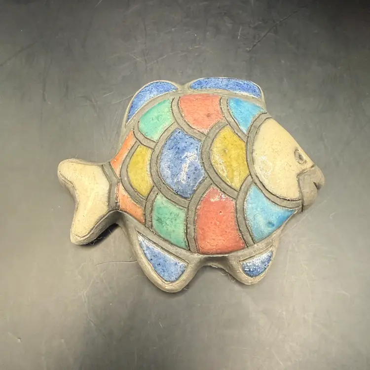 Raku Artist Signed Colorful Glazed Small Fish Wall Hanging 4”
