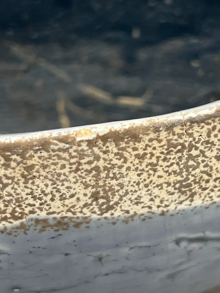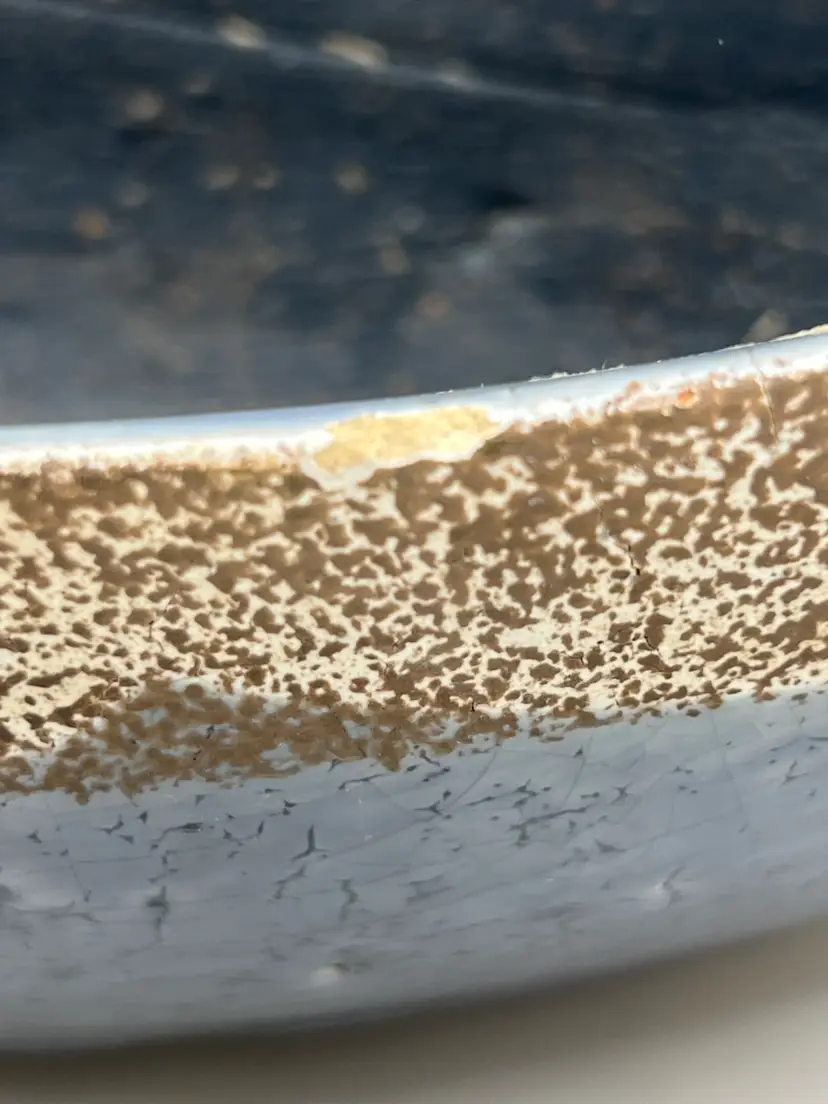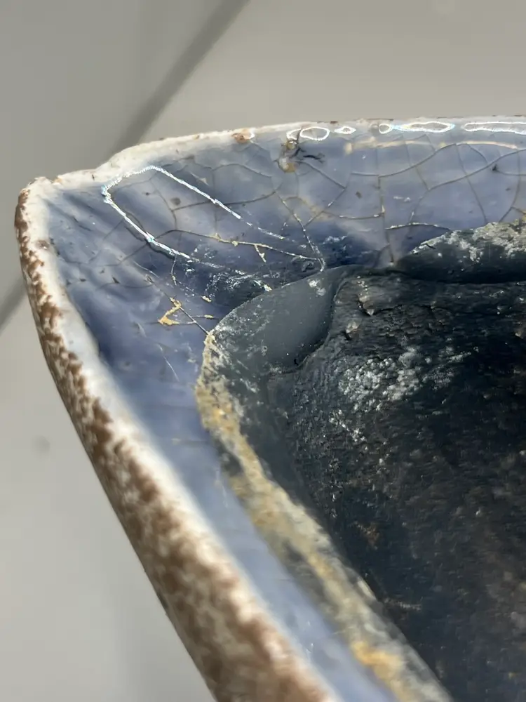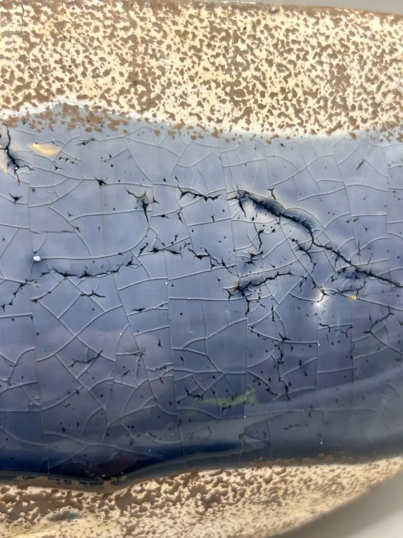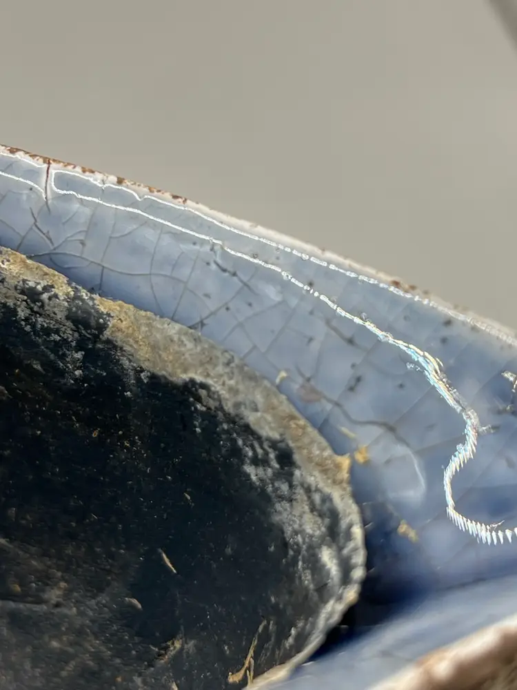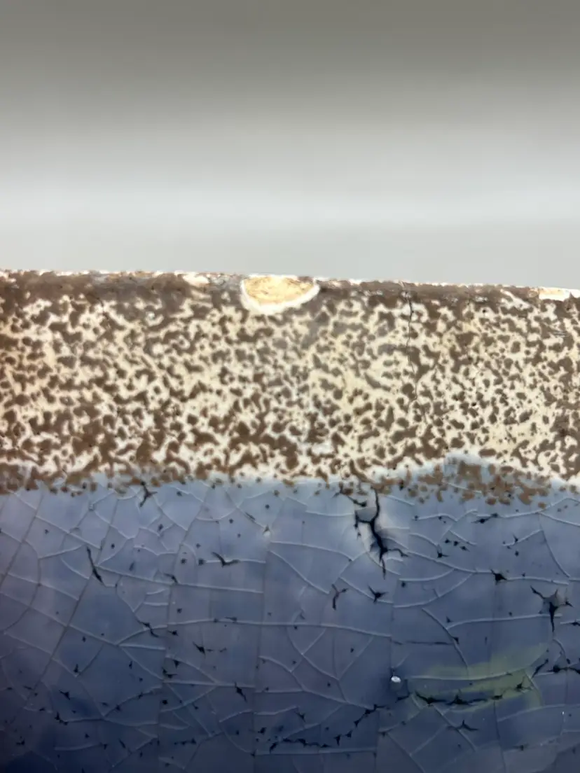 There are some small chips along the rim. One of the ends of the planter looks uneven (possibly chipped). There is crazing. Please see all pictures!
