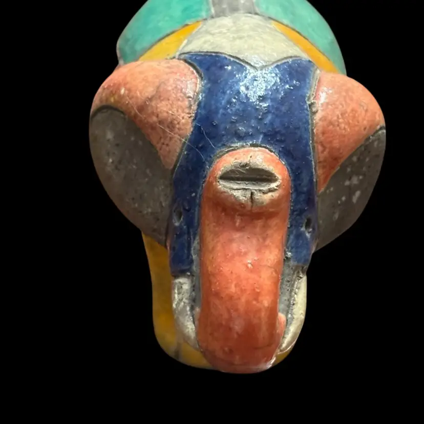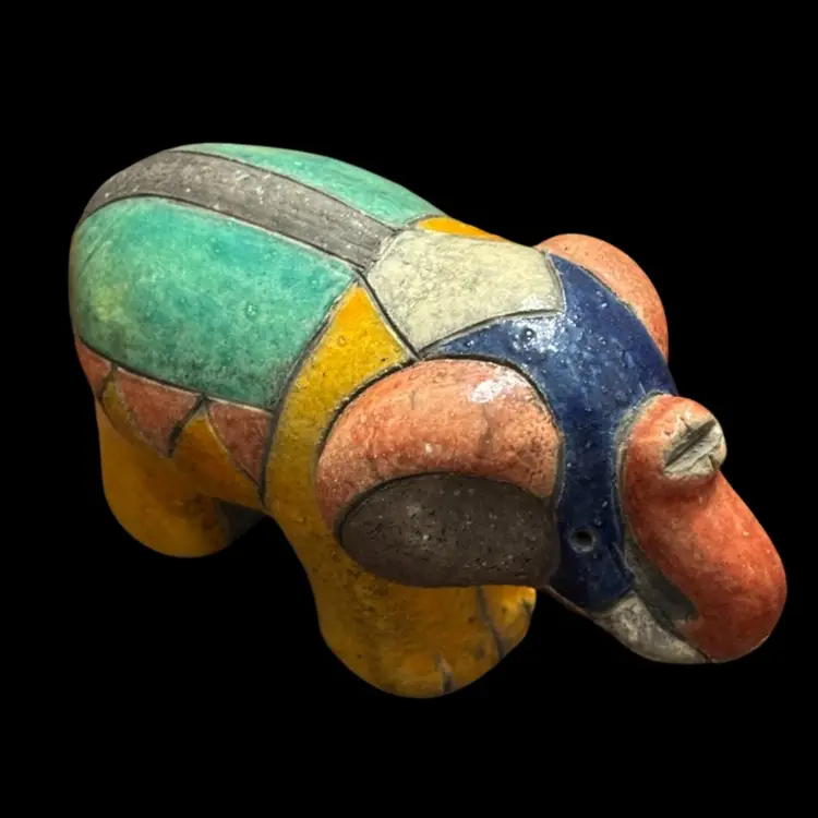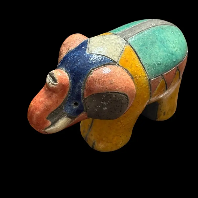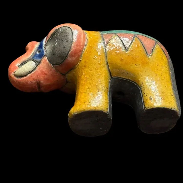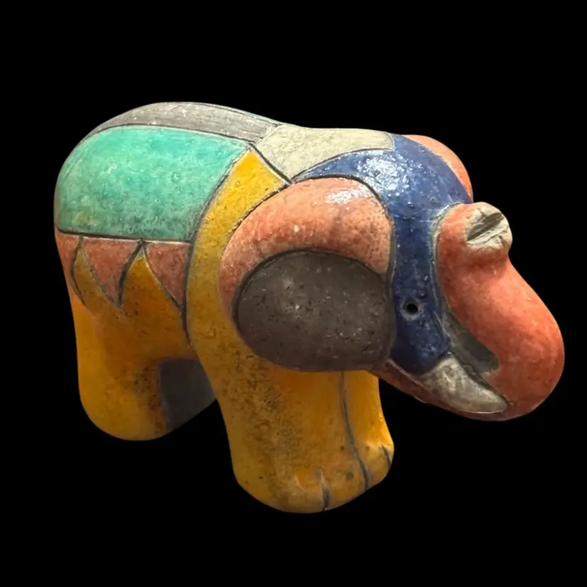 Colourful Raku pottery elephant. No chips or cracks 4.25x2x2.75”