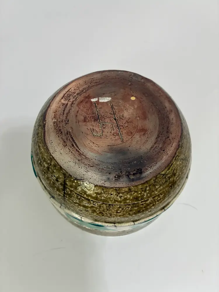 No damage to any part of the piece, beautiful medium size bowl or planter, signed on the bottom in last picture as shown