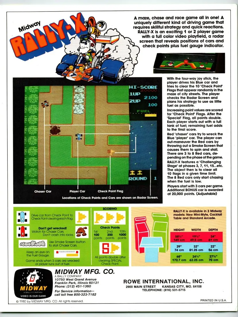 Brand: Midway Year: 1980 Game Title: Rally-X Theme: Driving Original/Reproduction: Original Country/Region of Manufacture: United States Modified Item: No Arcade: Flyer