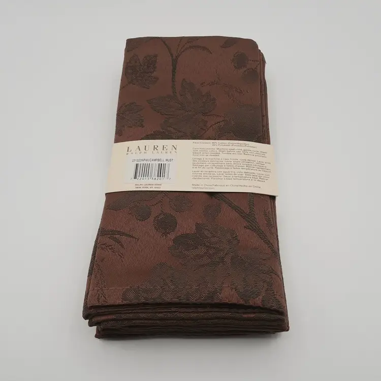 Beautiful rust floral leaf napkins are 20x20 and perfect for Fall!