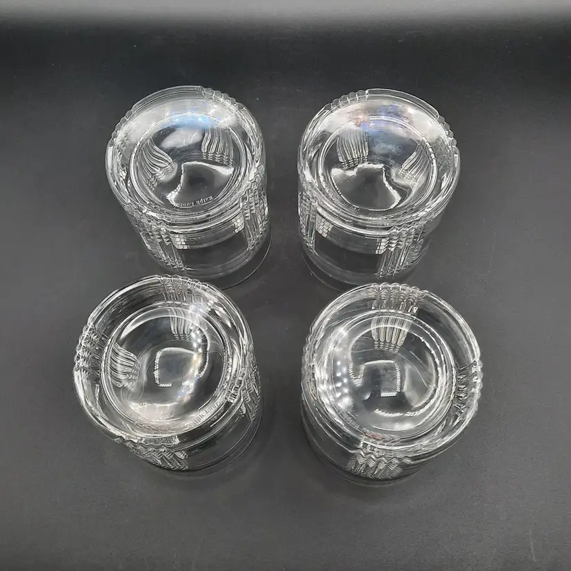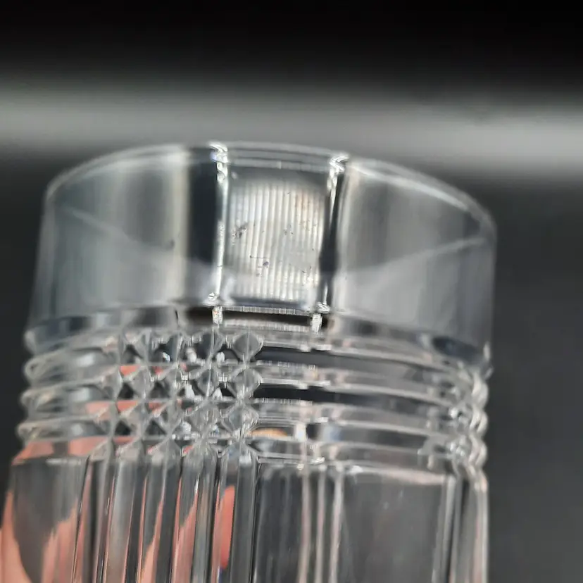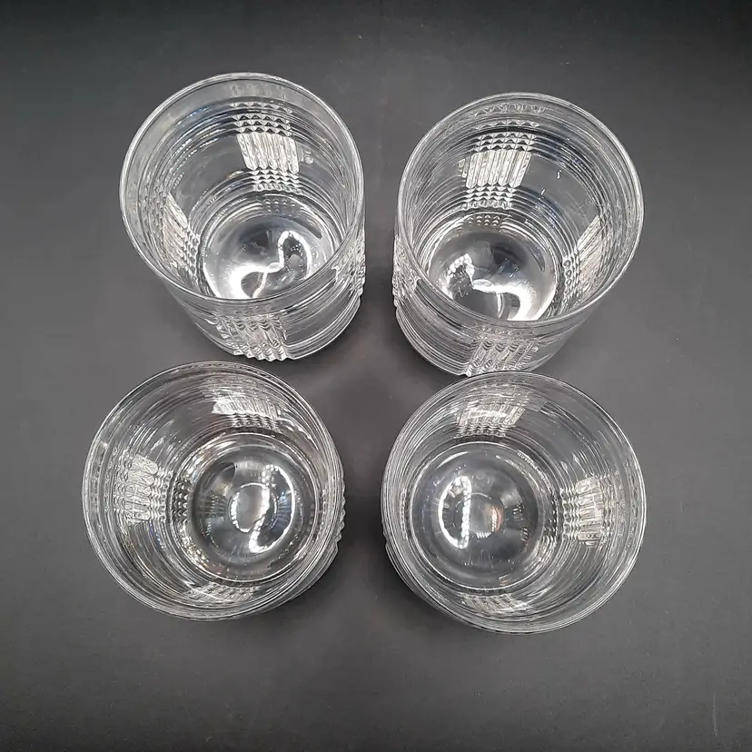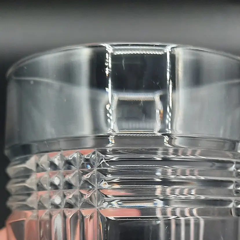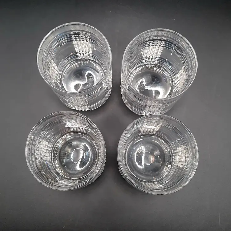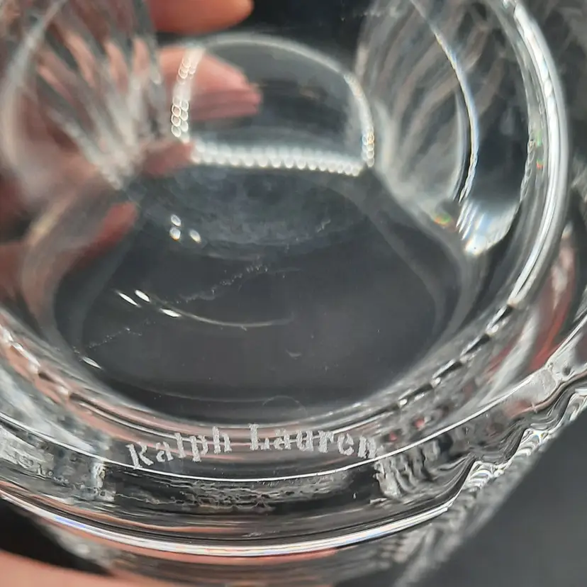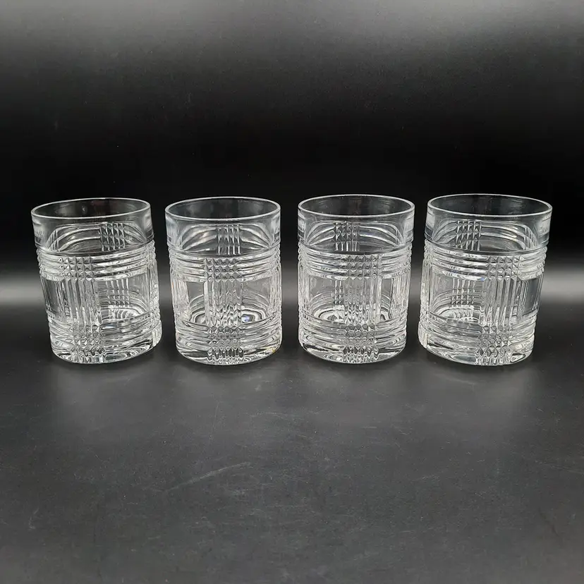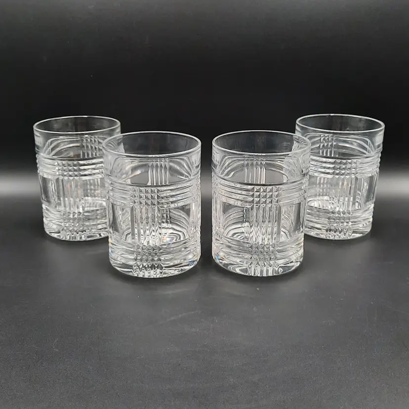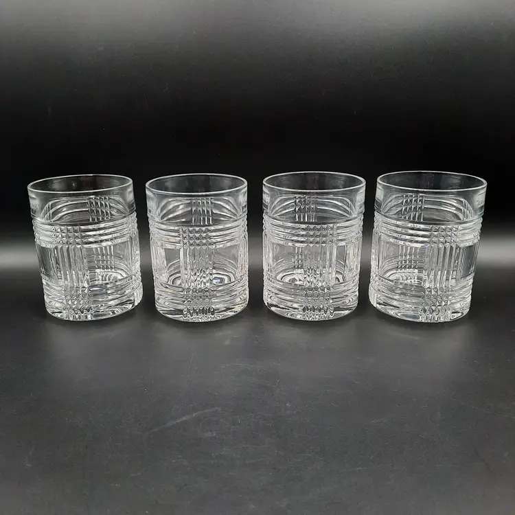 This classic crystal pattern by Ralph Lauren has regained popularity due to being the Dutton glasses in the Yellowstone series! This set of 4 glasses is in overall great condition - no chips or cracks, they do have some light wear/scuffs/scratches from use, film on bottom of one glass and one glass has what appears to be a mfg flaw on bottom edge of top rim band (looks like fleabites but is not sharp). Tried to capture imperfections in pics (most I couldn't see until I put in light box to photograph). Please reach out with any questions!