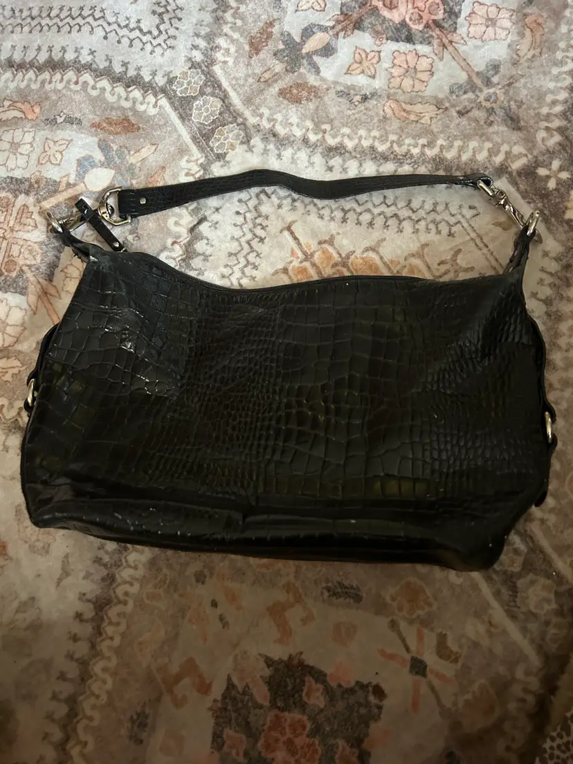 15x10 purse Ralph Lauren detachable handles black crocodile look inside good condition