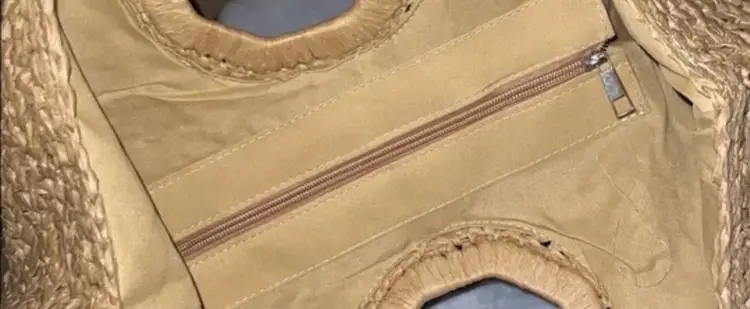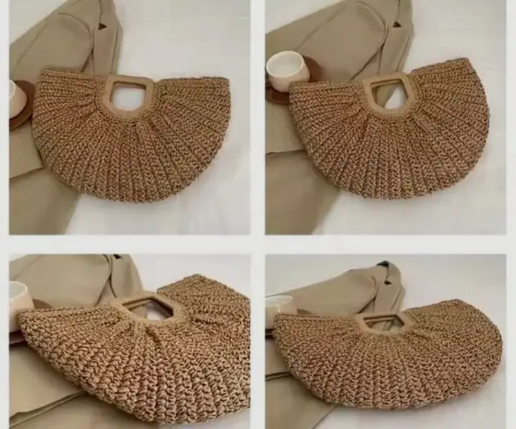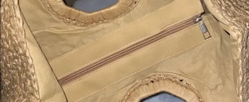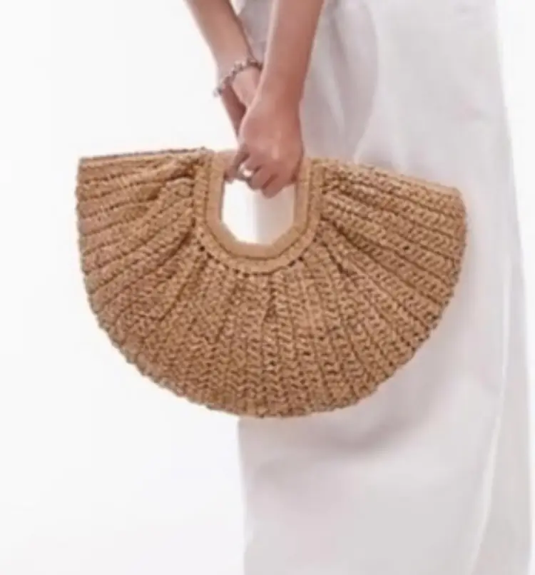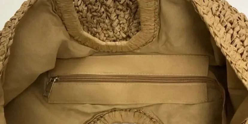 Brand: Ramla Exterior material: Rattan, Straw Style: Tote Exterior color: Natural Tan Department: Women Shape: Half-Moon Features: Large capacity, Zippered pocket Handle style: Top Handle Occasion: Casual Handmade