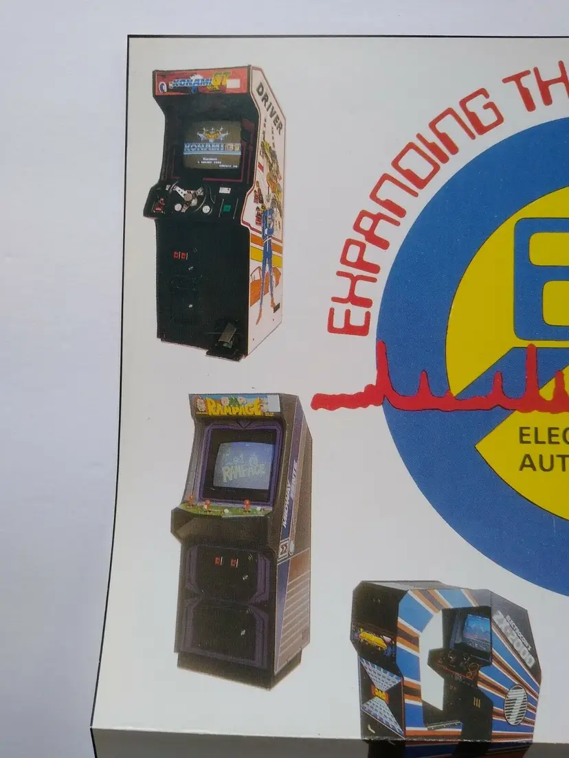 Material: Paper Arcade: Flyer Modified Item: No Country/Region of Manufacture: United Kingdom Original/Reproduction: Original Year: 1986 Game Title: Rampage, Unigame, Konami GT, ZX-2000 Brand: Electrocoin Automatics LTD