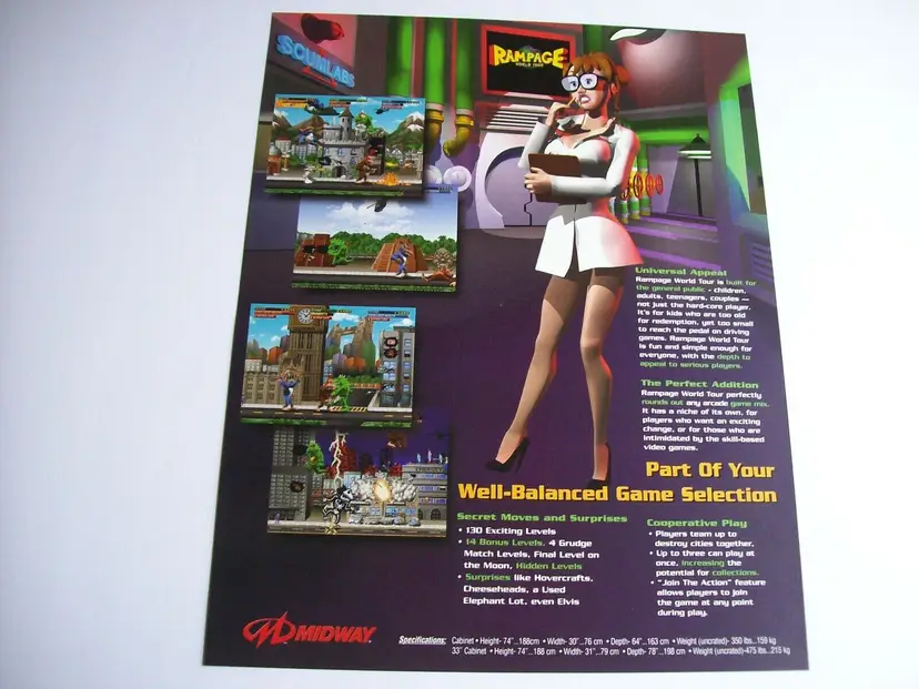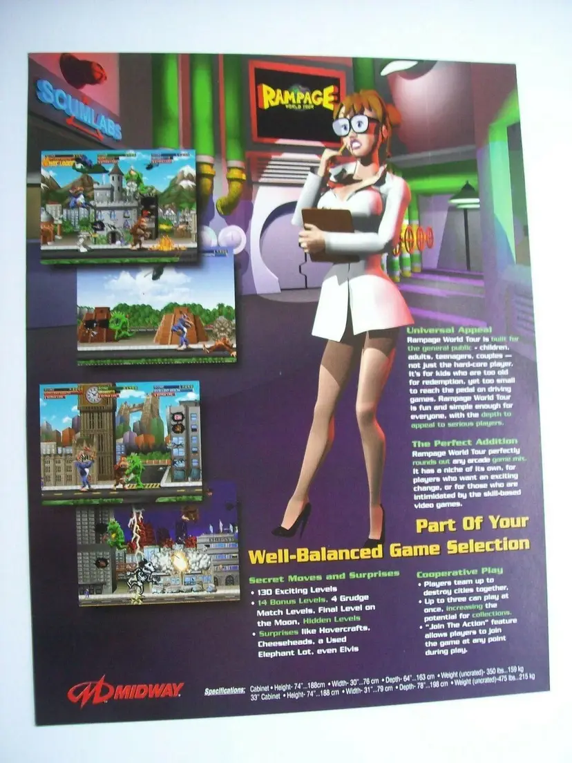Arcade: Flyer Theme: Monsters Modified Item: No Country/Region of Manufacture: United States Original/Reproduction: Original Year: 1997 Game Title: Rampage World Tour Brand: Midway