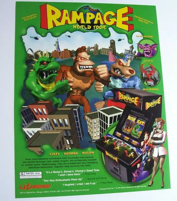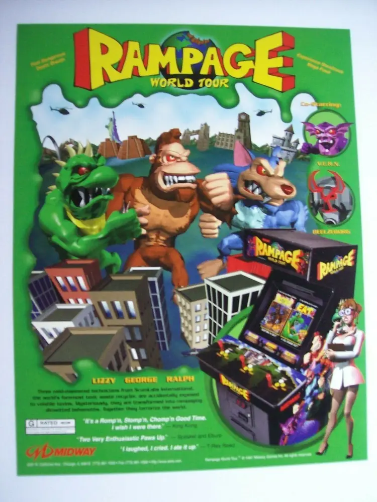 Midway Rampage World Tour Arcade FLYER 1997 Original NOS Video Game Art Monsters