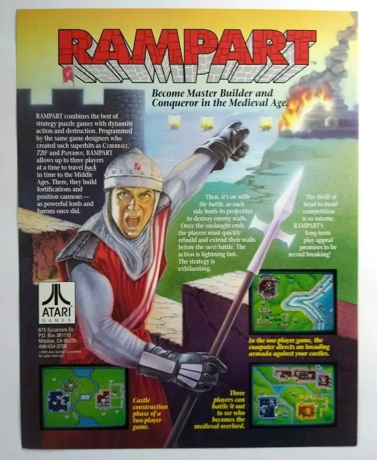 Arcade: Flyer Theme: Medieval Modified Item: No Country/Region of Manufacture: United States Original/Reproduction: Original Year: 1990 Game Title: Rampart Brand: Atari