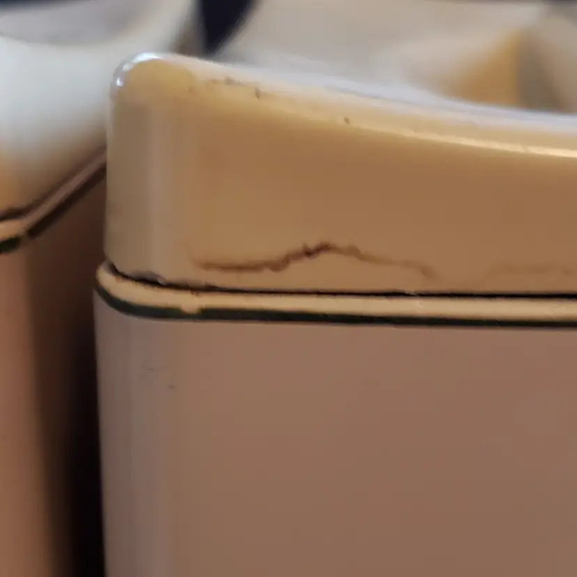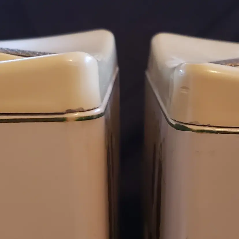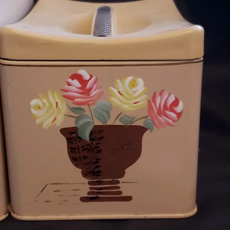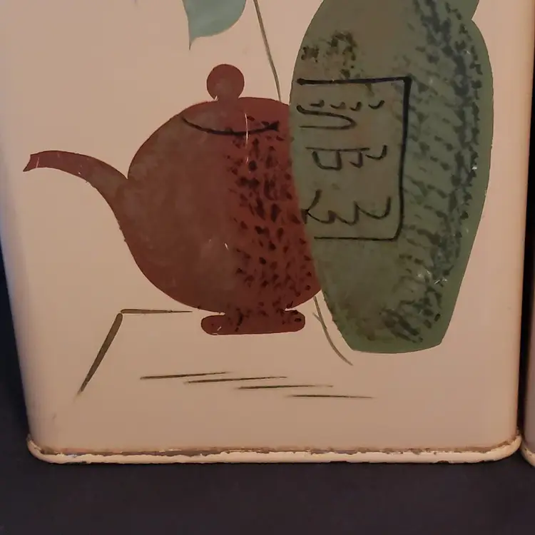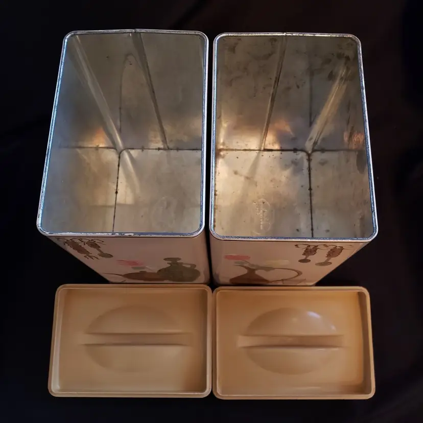 Number of Items in Set: 3 Antique: No Shape: Rectangle Color: Beige Material: Metal, Plastic Item Length: 2 Sizes Vintage: Yes Brand: Ransburg Type: Canister Set Original/Licensed Reproduction: Original Item Height: 2 Sizes Number in Pack: 3 Style: Vintage/Retro Item Width: 2 Sizes