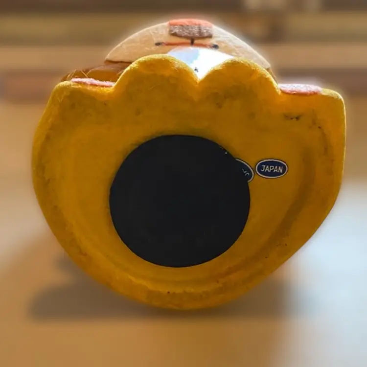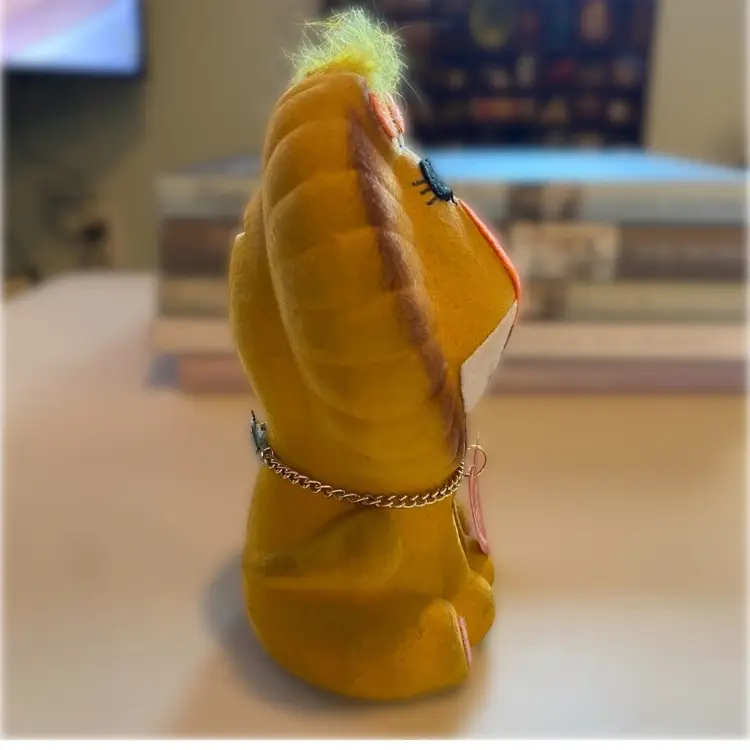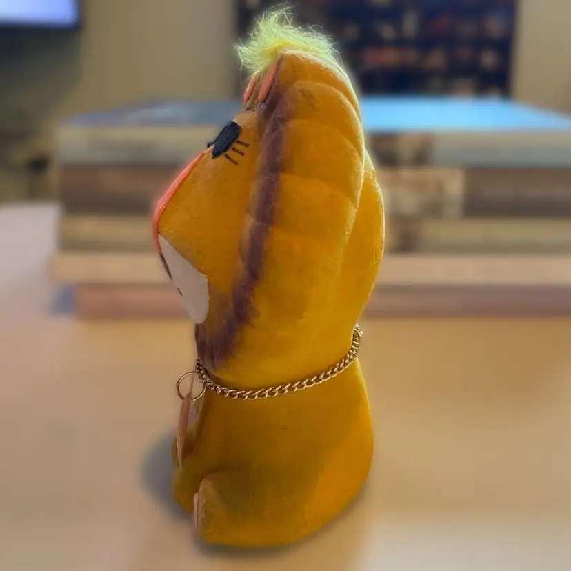 This is a very rare Happy Friends retro lion piggy bank. It is made of flocked covered ceramic and is in excellent vintage condition. He is 6" tall.