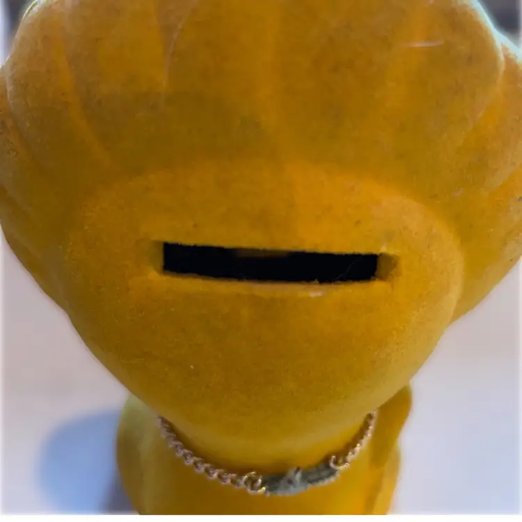 I purchased him at an estate sale and he belonged to the gentleman running his father's estate sale and he said he remembered the day he got the piggy bank from his dad.