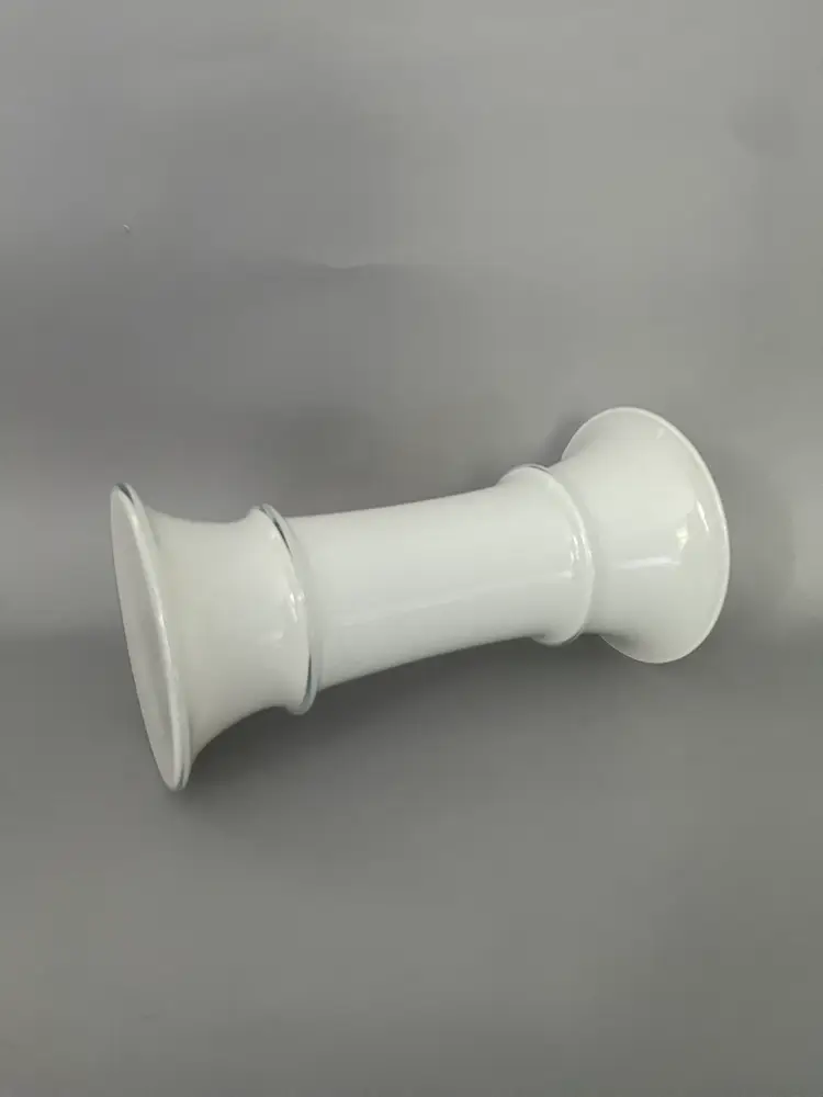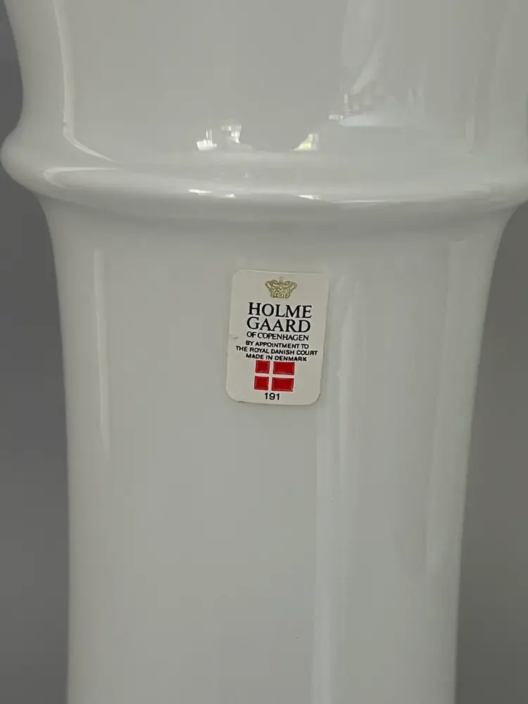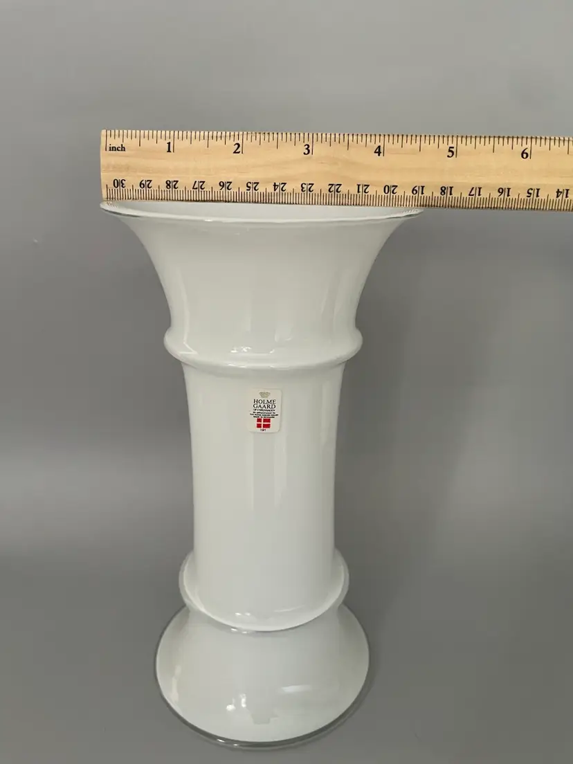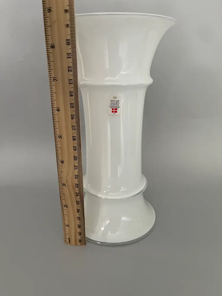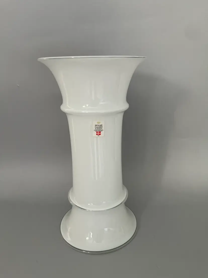 This is a rare piece with the original label. This 1980s Danish Handblown Glass Vase is by Michael Bang for Holmegaard The small art white glass vase in very good condition. Michael Bang (1942-2013) was the son of Jacob E. Bang, Holmegaard’s first designer. In the 1960s - 1980´s, Michael Bang was a designer at the Odense Glass Factory, / Holmegaard but moved with his family to Holmegaard in the 1980s. Michael Bang was quick-witted, fascinating and fun and able to spellbind an audience when the glass factory organised talks and presentations. Many of his products have now become collector’s items.
