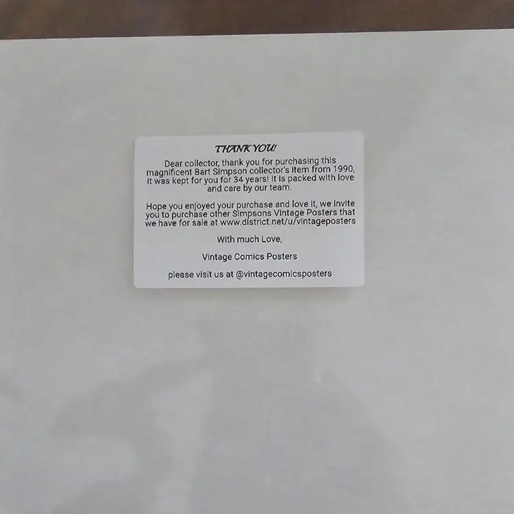 Hello! We are Vip Art Connection, a wholesaler of vintage art prints and posters. Here we have a limited quantity of vintage The Simpsons posters for sale. Over the years (1990/34 years) they have been protected from humidity, very well packaged and are in perfect condition. They are special for Collectors who admire these characters who have left their mark on generations. It's the unique opportunity to have yours!