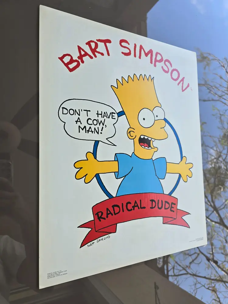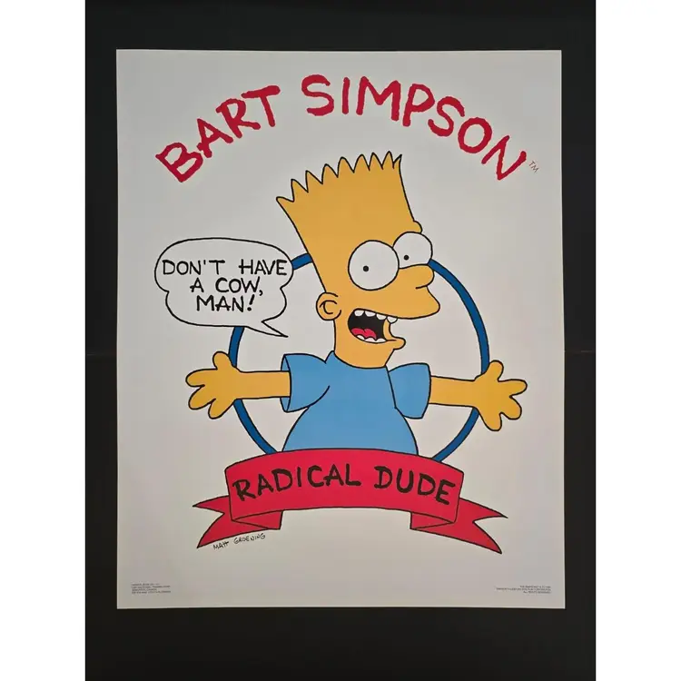 We have the pleasure to present this rare 1990 Bart Simpson Vintage Poster "DON'T HAVE A COW MAN"