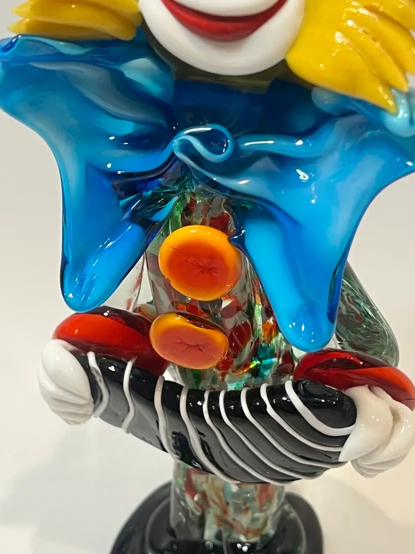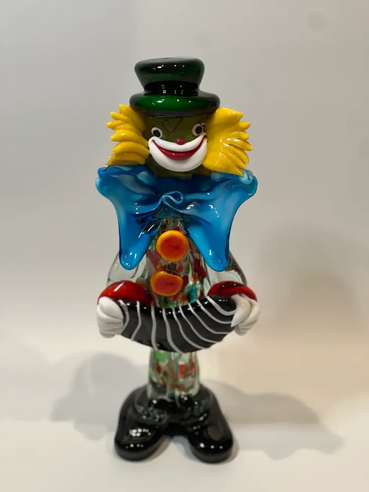 RARE large size 1970’S VINTAGE LA SERENISSIMA MURANO ITALY GLASS CLOWN FIGURINE W ACCORDION