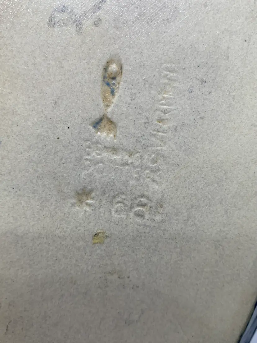 Dish does have faded pricing marker on bottom. I didn’t want to take an abrasive material to the piece. The buyer can decide if they want to try to remove more of the numbers