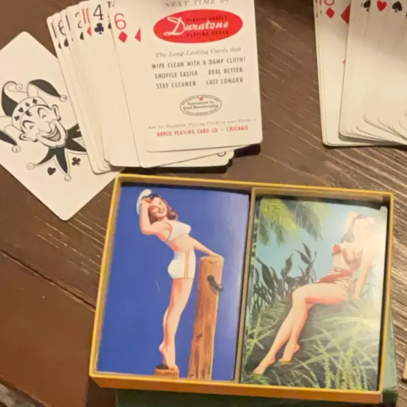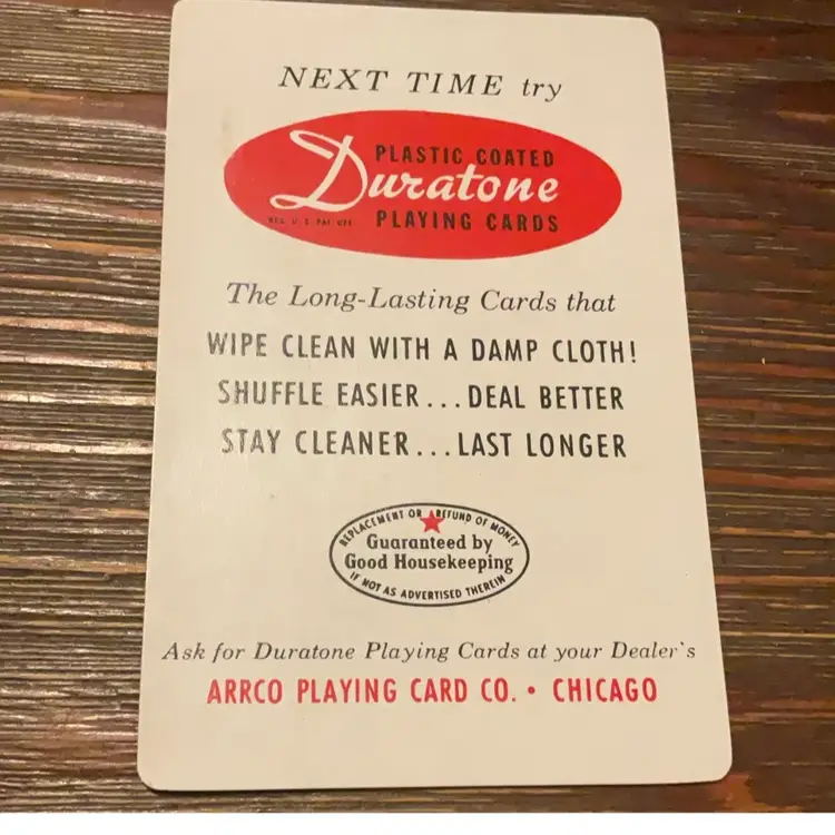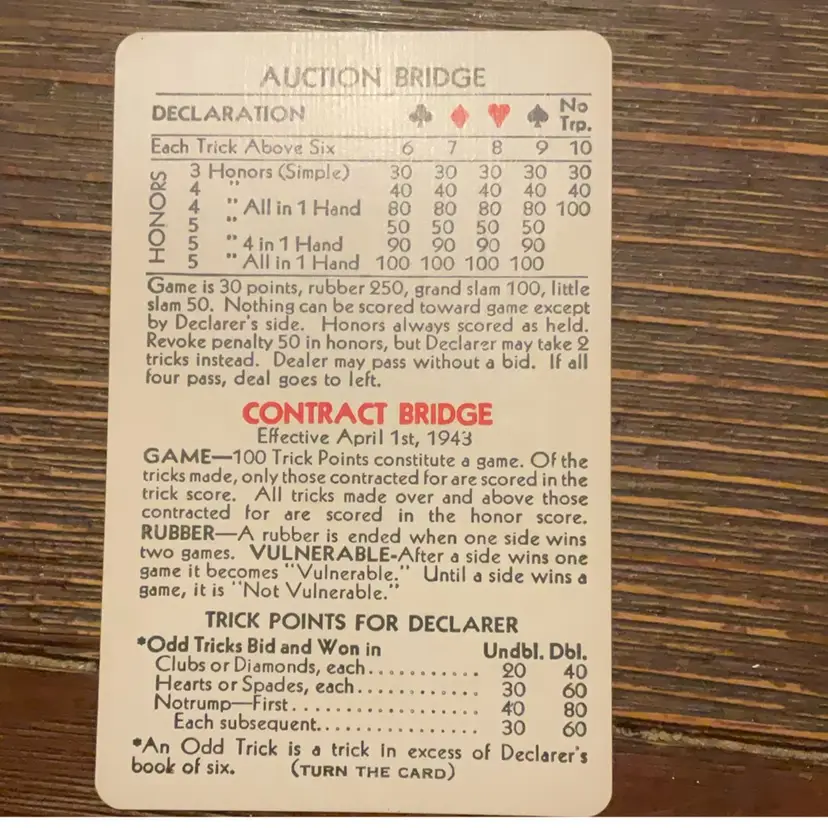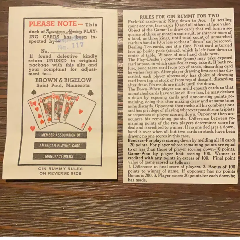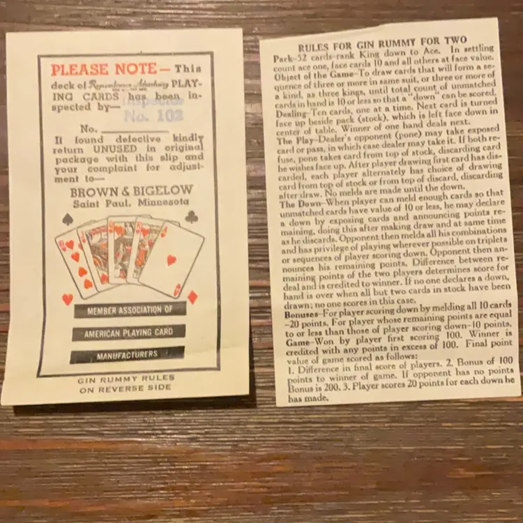This collectible Arrco Playing Card Co. St. Regis Playing Cards item is a rare find from 1943 (marked on one of the cards) making it a unique addition to any playing card or vintage memorabilia collector, adding a touch of nostalgia & charm to any card game or display Vintage 1943 cards 2 full 52 card decks=104 total with playing rule cards and 2 jokers total Great for a man cave/game room gift!