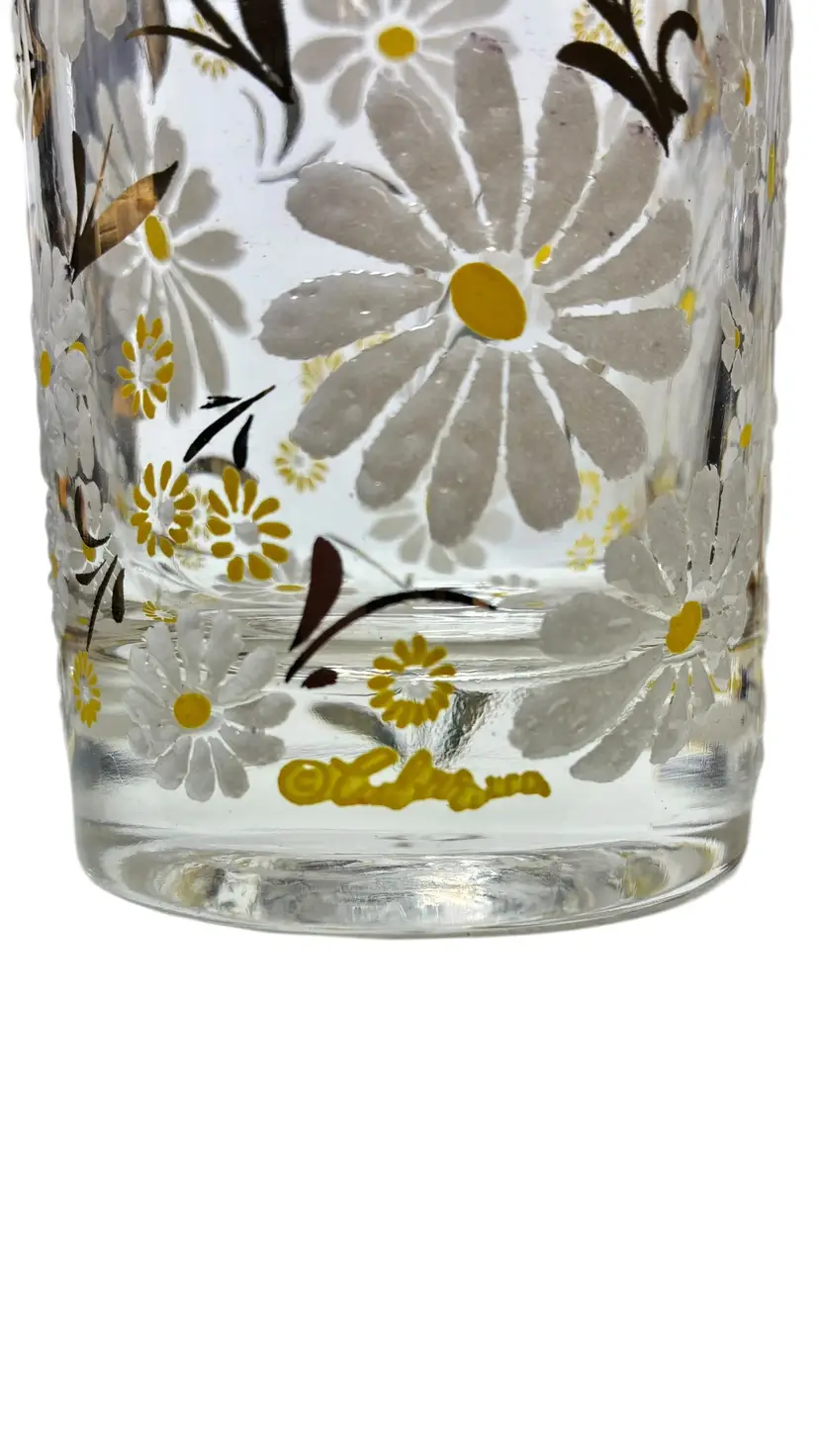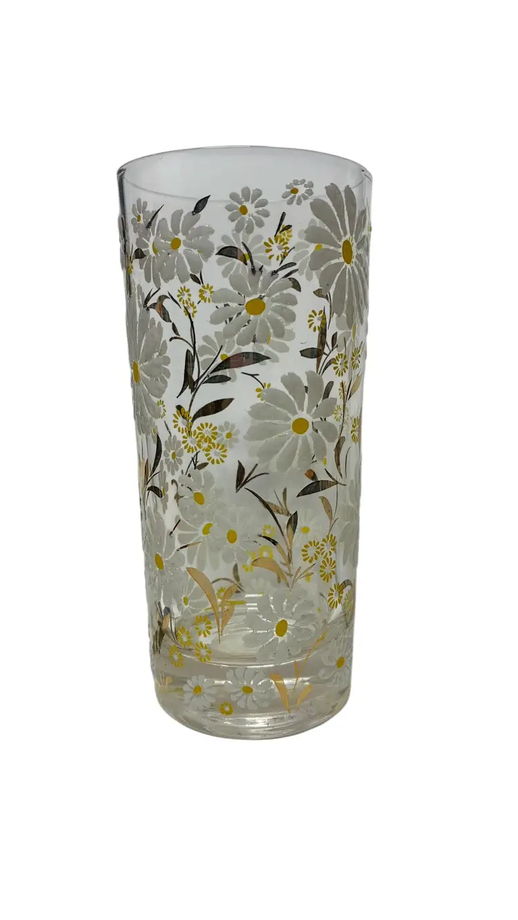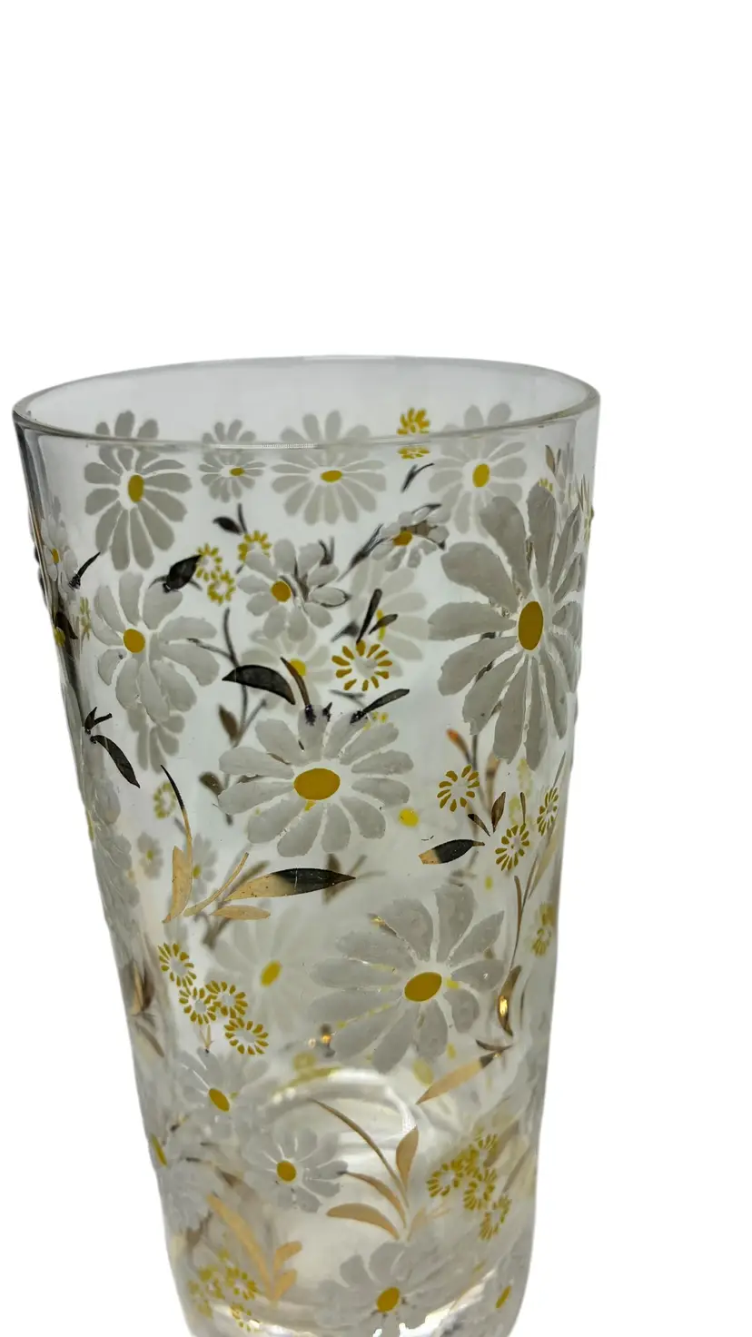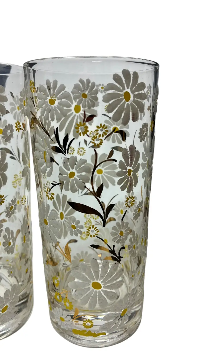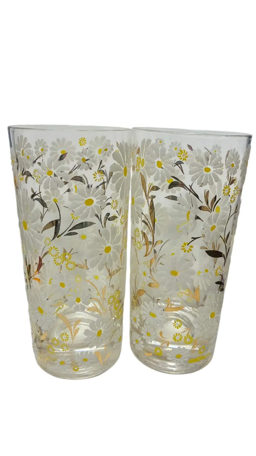 Flawless pair of Rare retro tall glass tumblers from Culver Inc. Enamel on glass No wear 6 1/4” tall