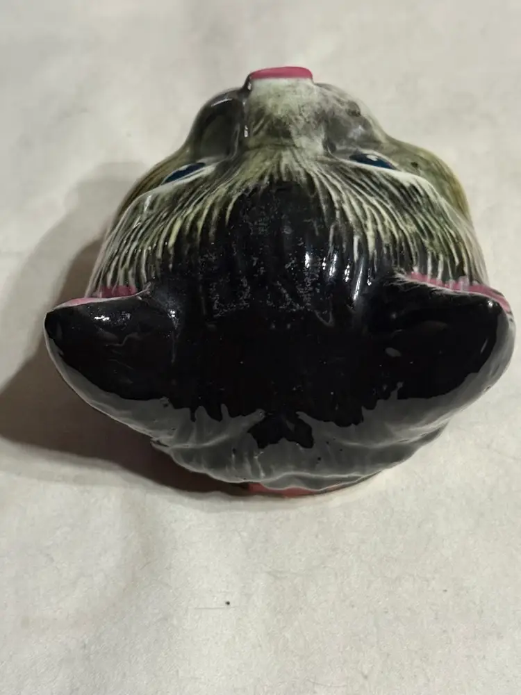 It can also double as a small ashtray or trinket holder, making it both functional and decorative. Enesco is well-known for its quality figural ceramics, and this piece is a perfect addition for collectors of vintage animal-themed décor. • Brand: Enesco • Style: Vintage ceramic cat incense burner / ashtray • Material: Hand-painted ceramic • Design: Cat head with smoke venting through the nose • Condition: Vintage, with age-appropriate wear (see photos for details