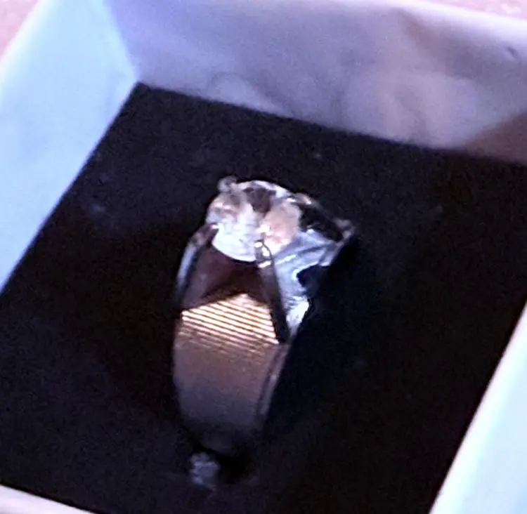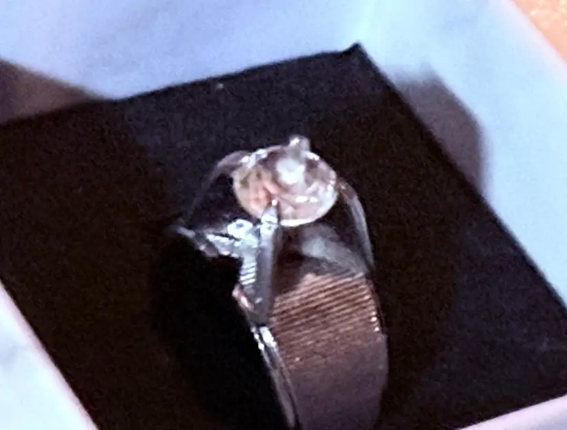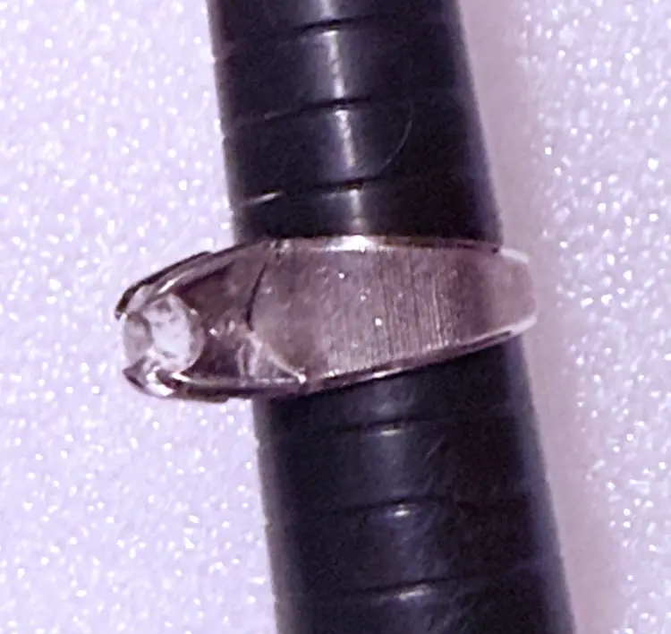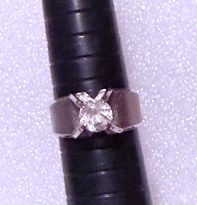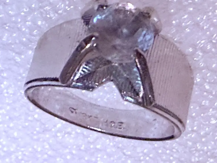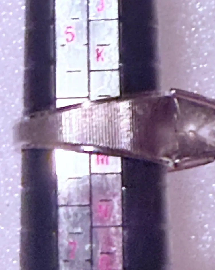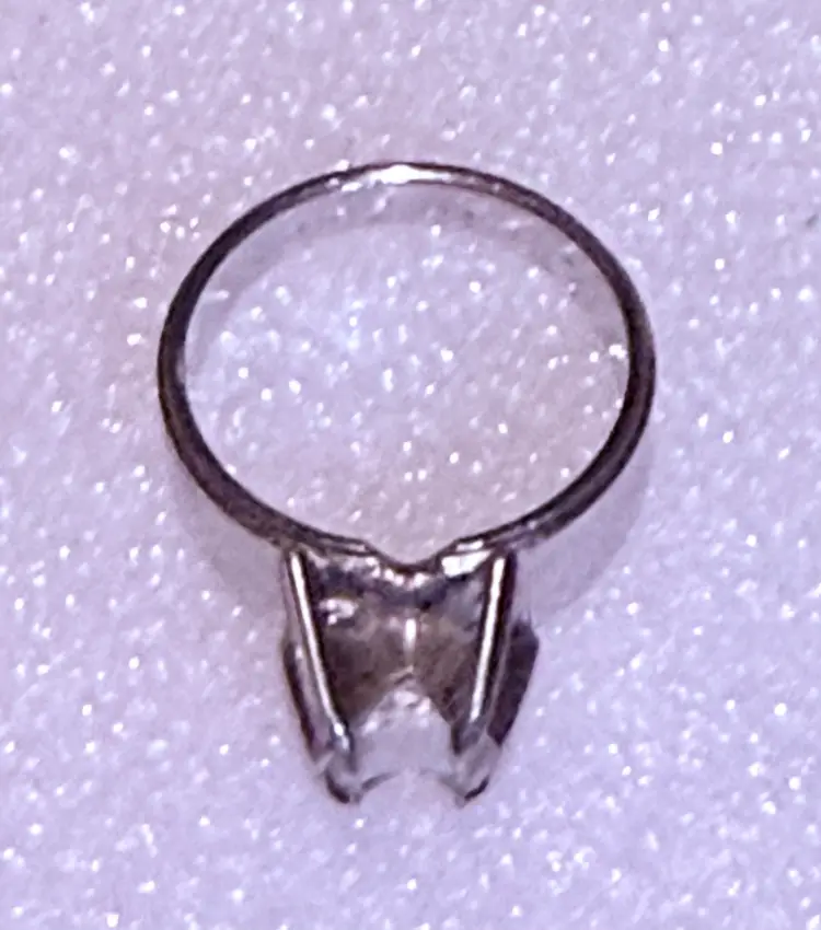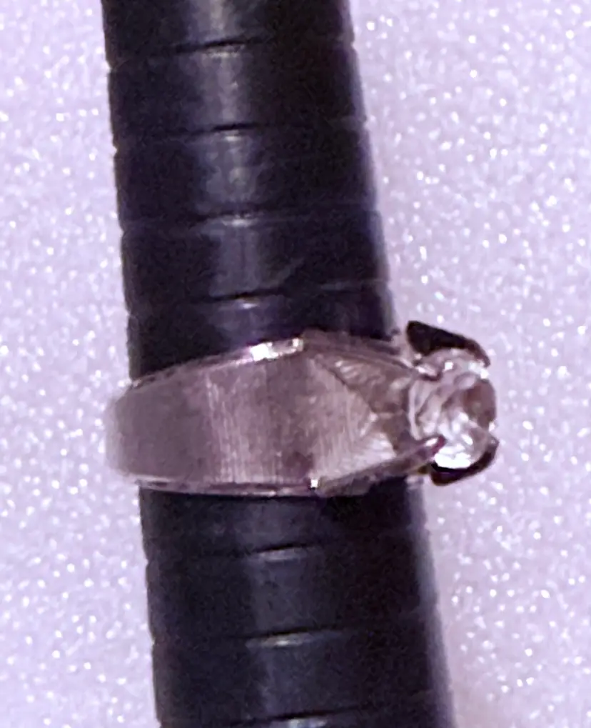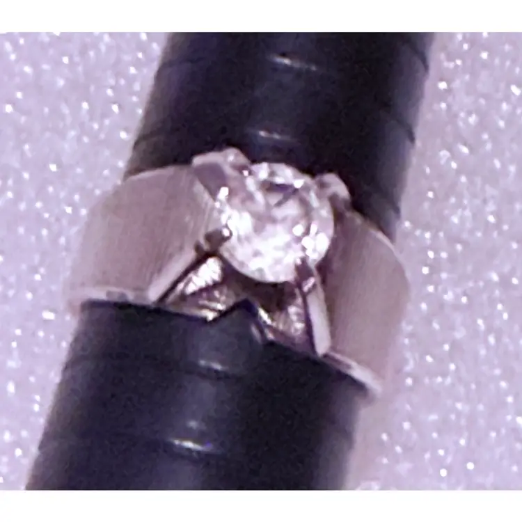 This Ring Has A Unique Look. It is a size 6. The clear stone is probably a cz. Please view all photos as this is the actual item your purchasing. I don’t see any flaking at all, could use a cleaning. Vintage items do have some wear due to the age. But I don’t see anything really noticeable on this piece. Vintage items are sold as is.