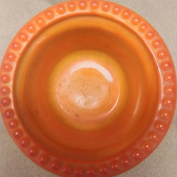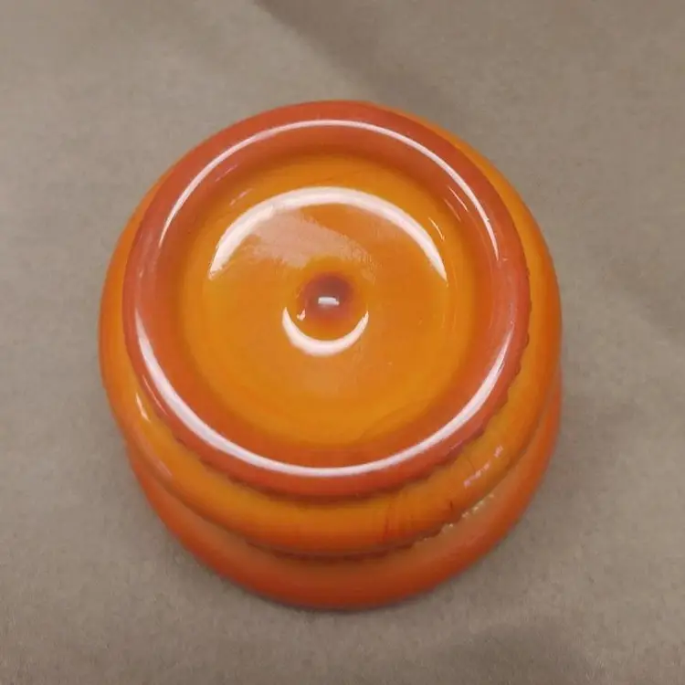 Gorgeous Vintage Red Slag Orange Summit Art Glass Vase made with made with manganese and it glows red and orange under a black light. It was made by the now historic Summit Art Glass Company in the 1970’s. It measures 2” x 2” high.