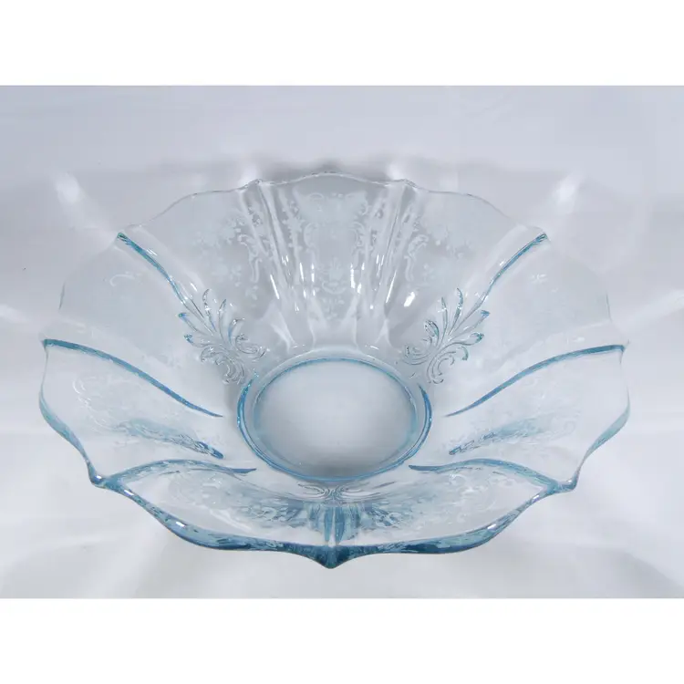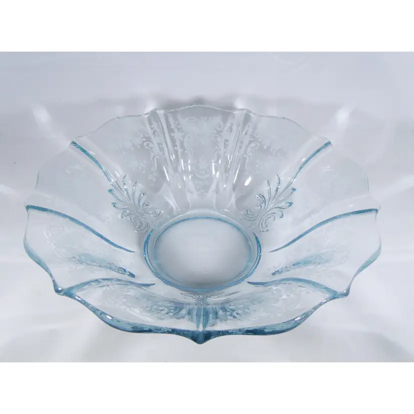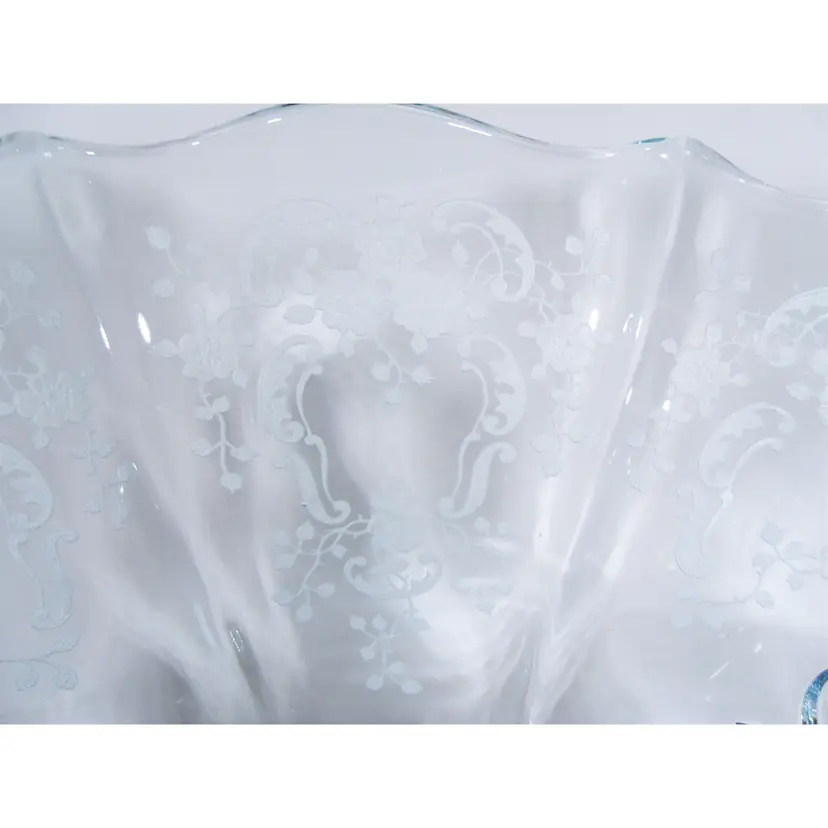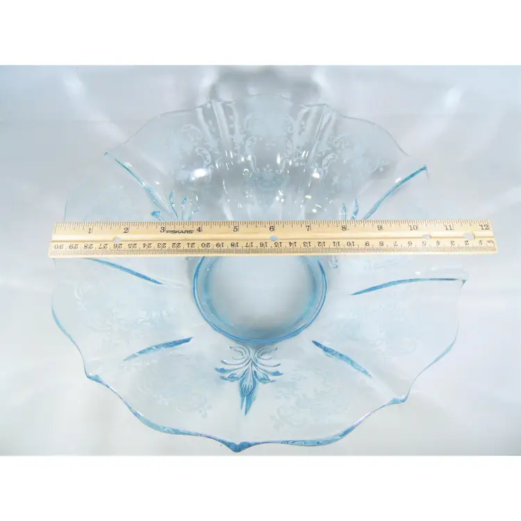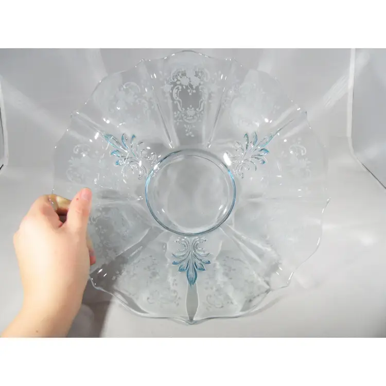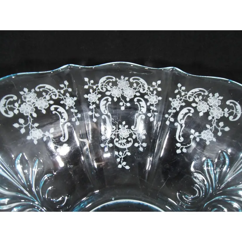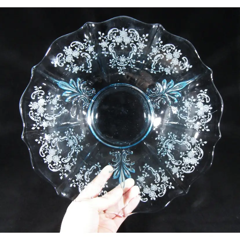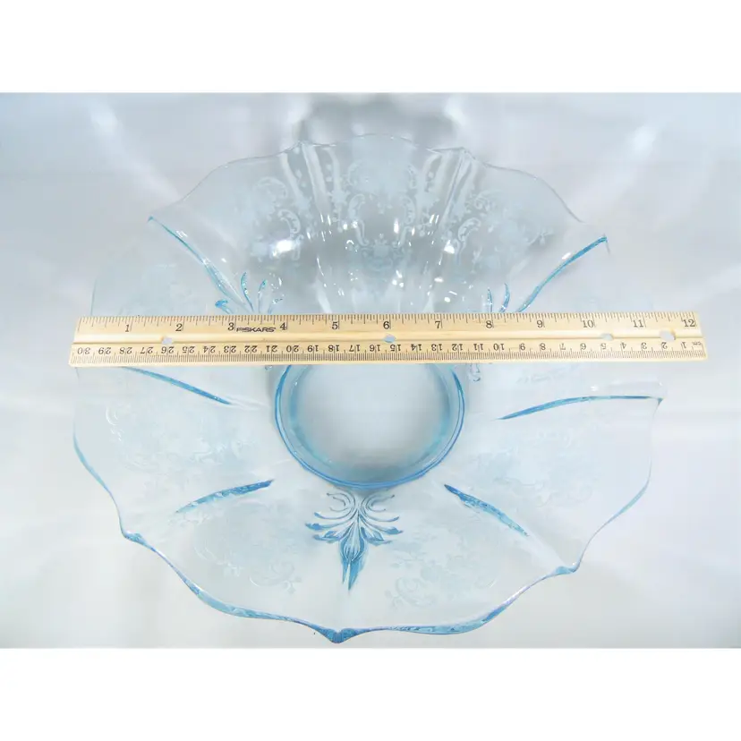 RARE Fostoria 11" Meadow Rose Blue Etched Console Salad Serving Bowl 1936 - 1943