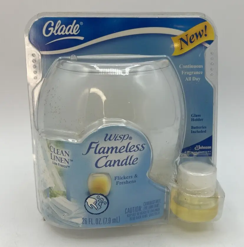 Rare Glade Wisp Flameless Candle Clean Linen Scent Glass Holder NEW 2007