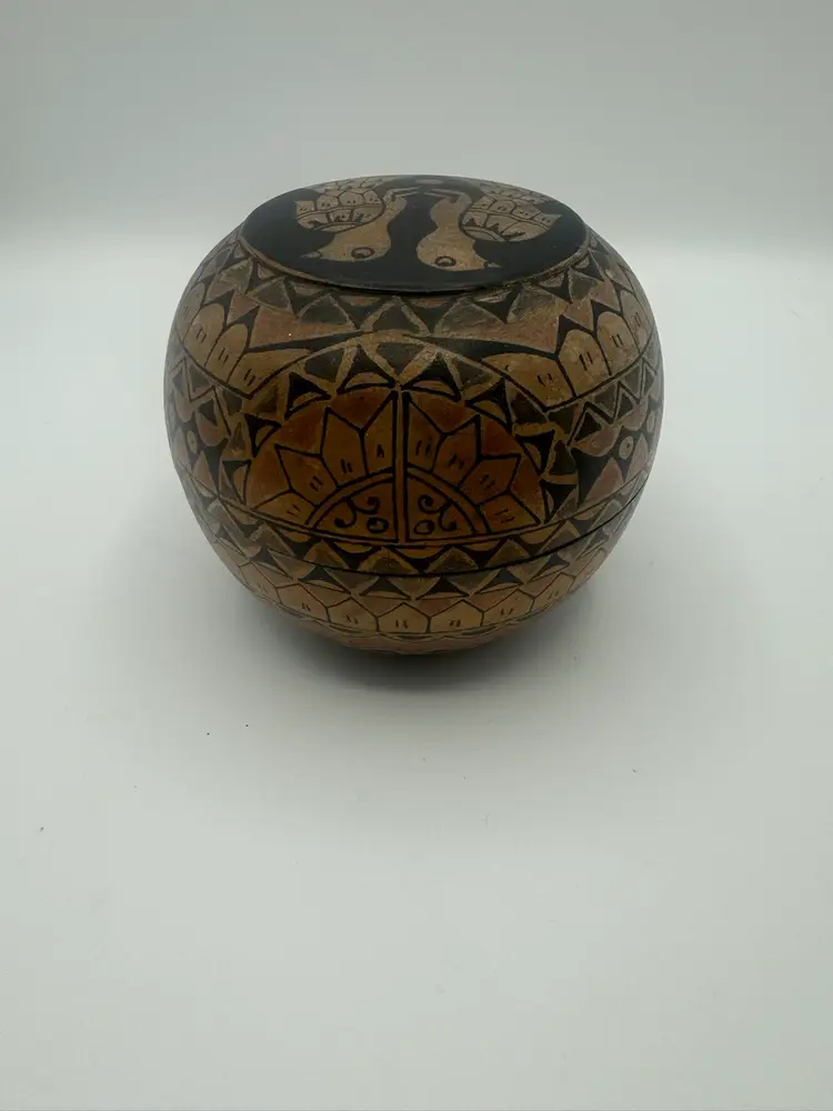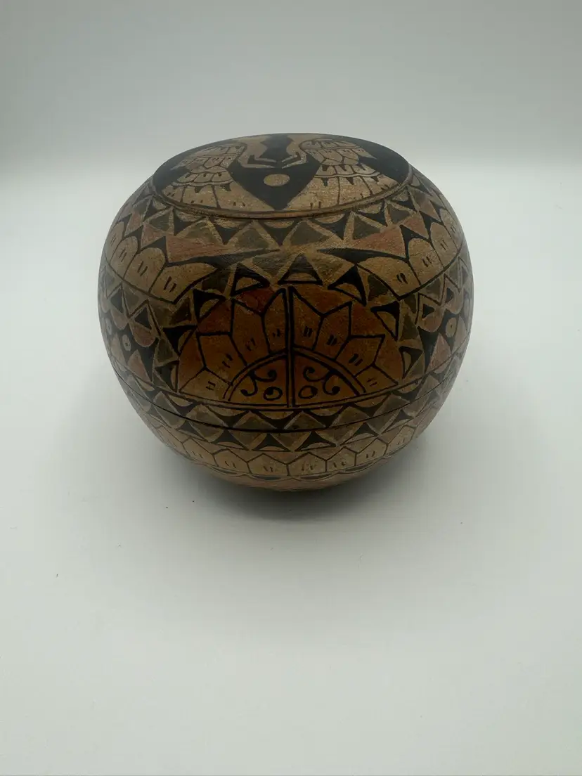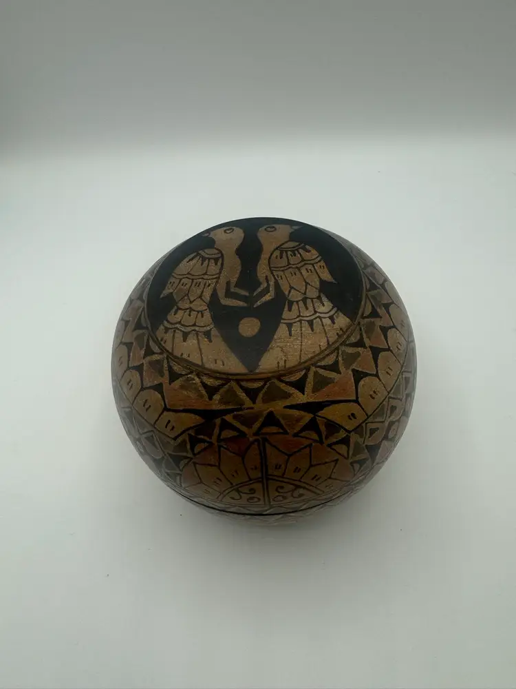 The box is perfect for storing small items, and the fact that it is handmade adds a special touch to its charm. The box is an original piece from Indonesia. This box is sure to be a conversation starter and a cherished addition to any collection.
