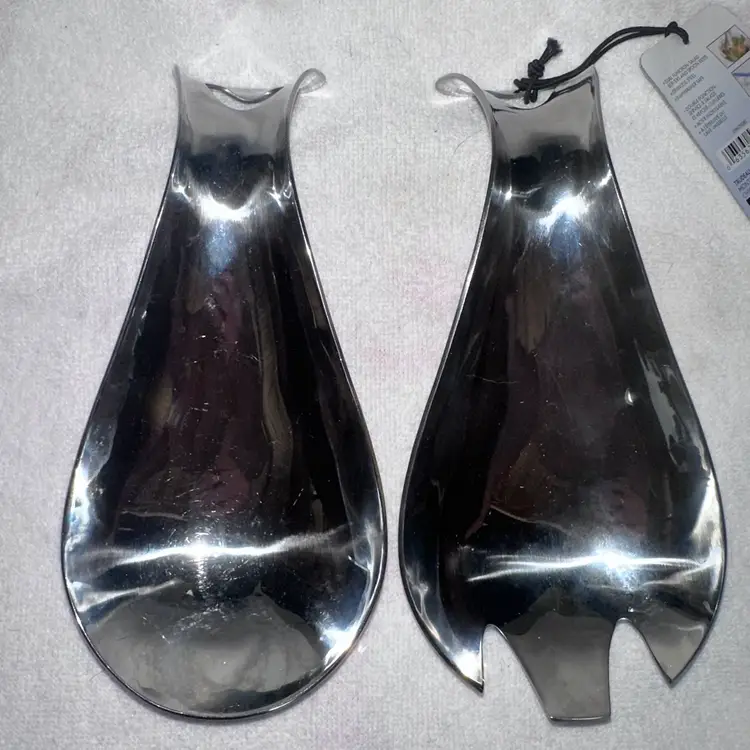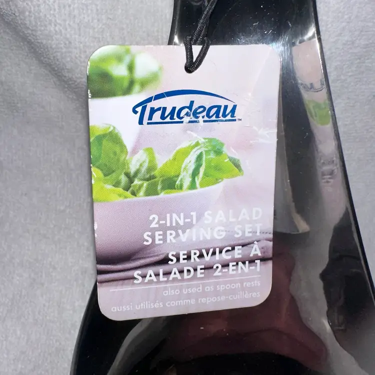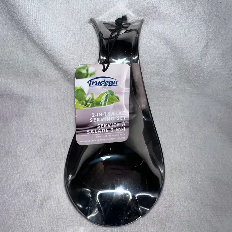 RARE Hard To Find New Old Stock 2012 Trudeau 2-IN-1 Stainless Steel Salad Serving Set / Spoon Rests. Dishwasher Safe. Smoke Free Home. #trudeau #saladserver #saladforks #spoonrests #stainlesssteel #kitchentools #servingutensils