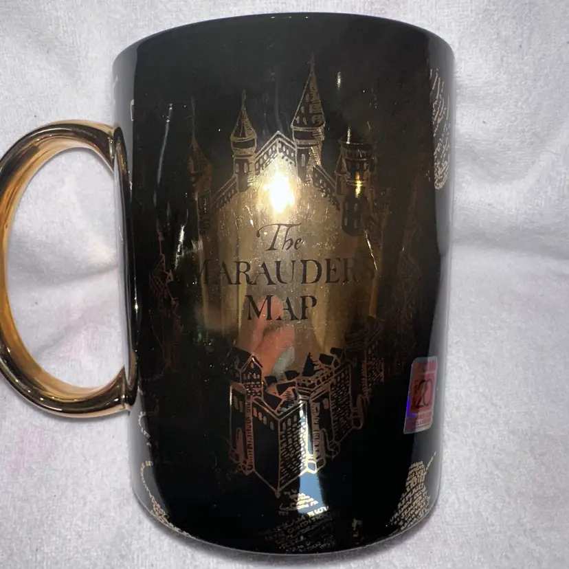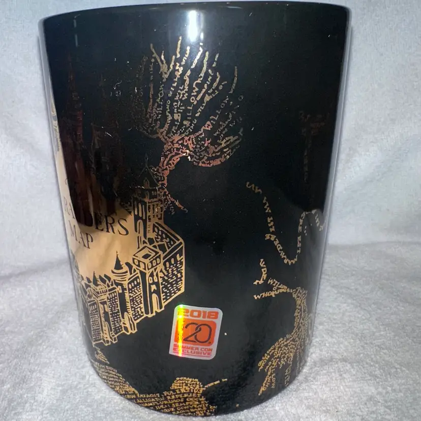 RARE Hard To Find New Old Stock Unused 2018 Harry Potter The Marauder’s Map Oversized 60oz Coffee Mug. Black With Hold Print And Images. Cup Is Printed On All Sides And Has A Shiny Gold C-Handle. From 2018 Summer Con Exclusive From Seven 20. Great Hard To Find Collector’s Piece. No Chips, Cracks, Crazing Or Repairs. Smoke Free Home. Cup Will Ship With A Tamper Proof Numbered Label To Avoid Disputes Of Item Not As Described or Flaws. Pictures are Of Exact Cup You Will Receive. Heavy Mug - Shipping Weight Is 4Lbs. 6 1-2” Tall. #harrypotter #maraudersmap #coffeemug #seven20