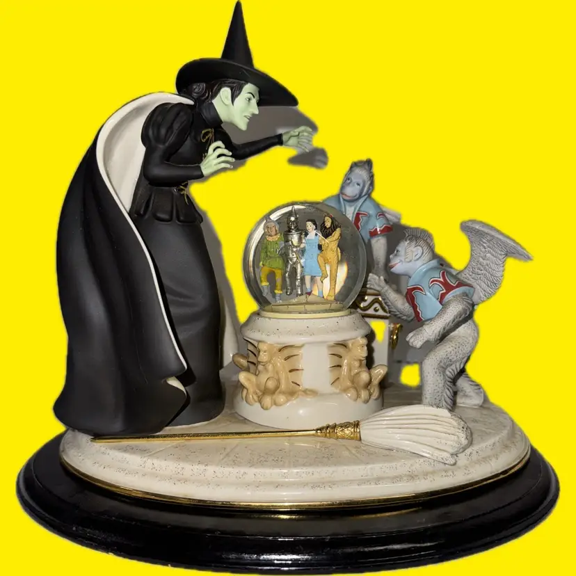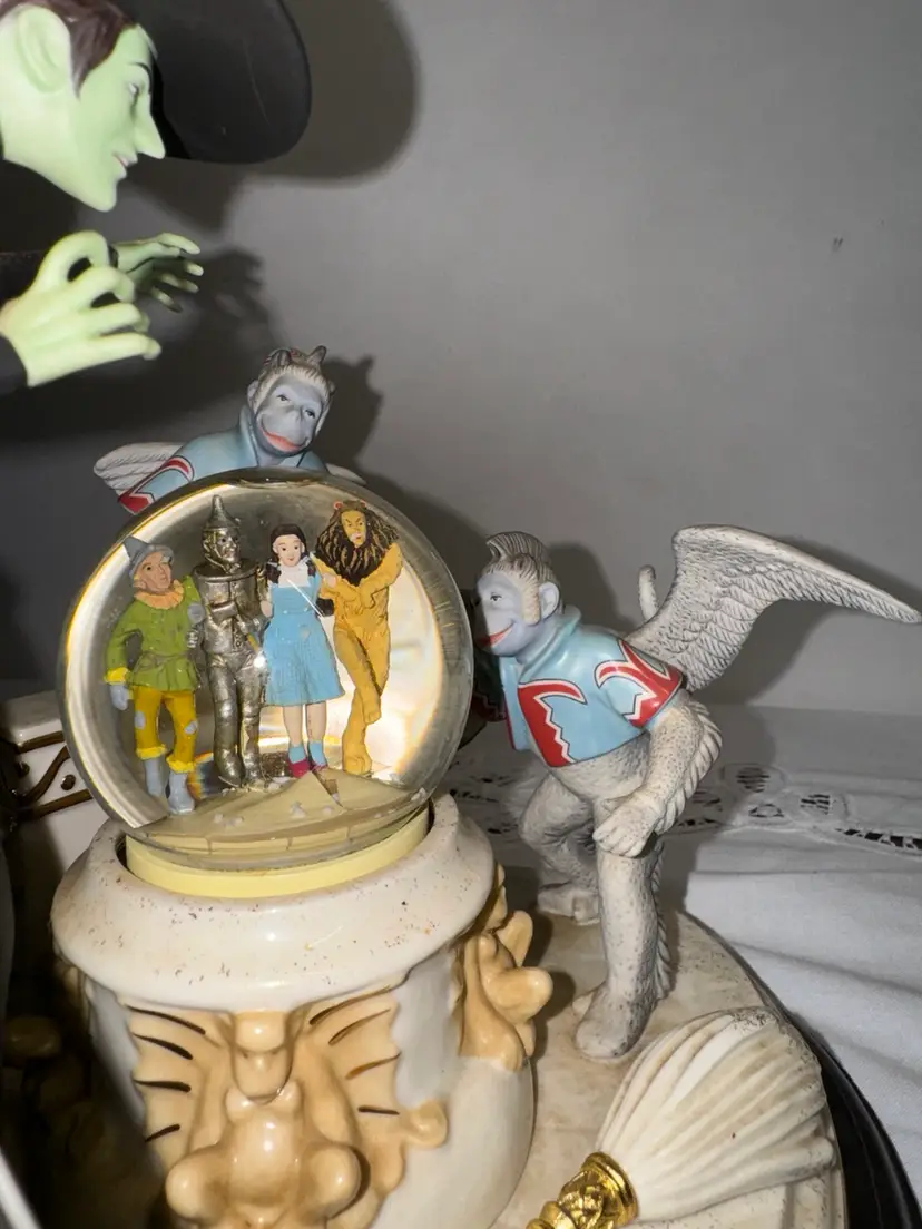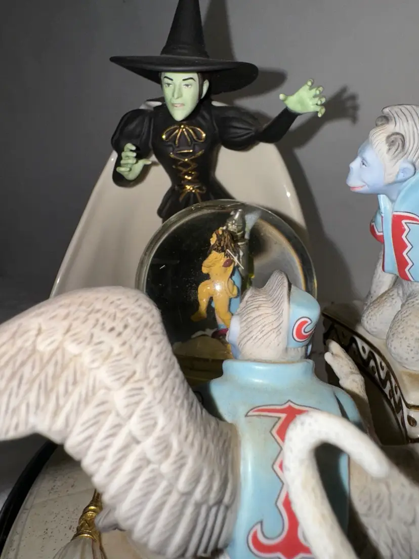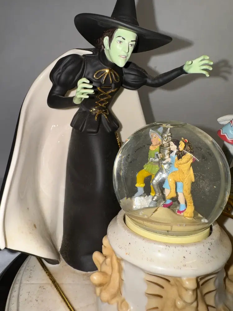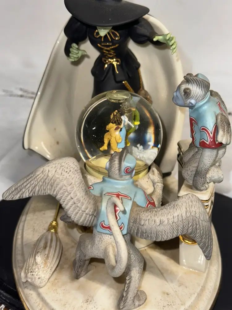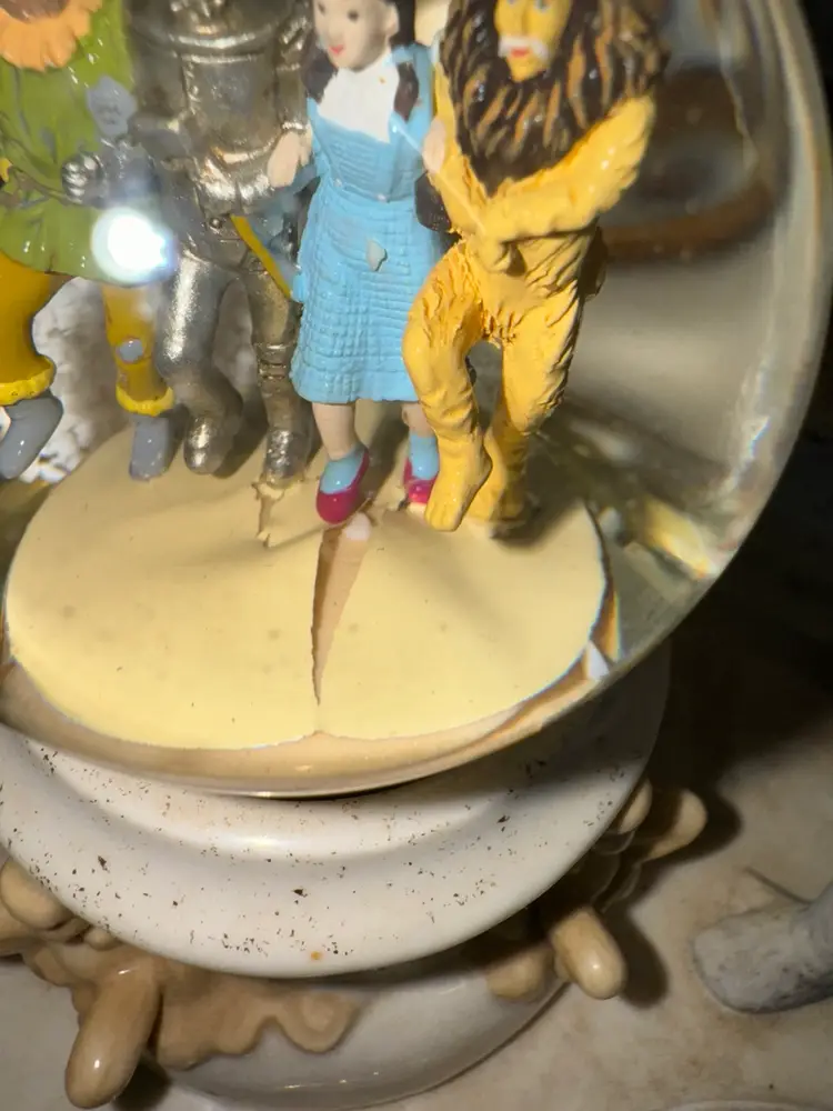 Porcelain wizard of oz an spell is cast figurine no chips breaks flea bite only call out is in the globe the yellow floor has risen due to age and water I imagine