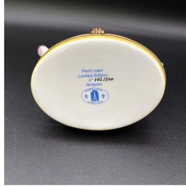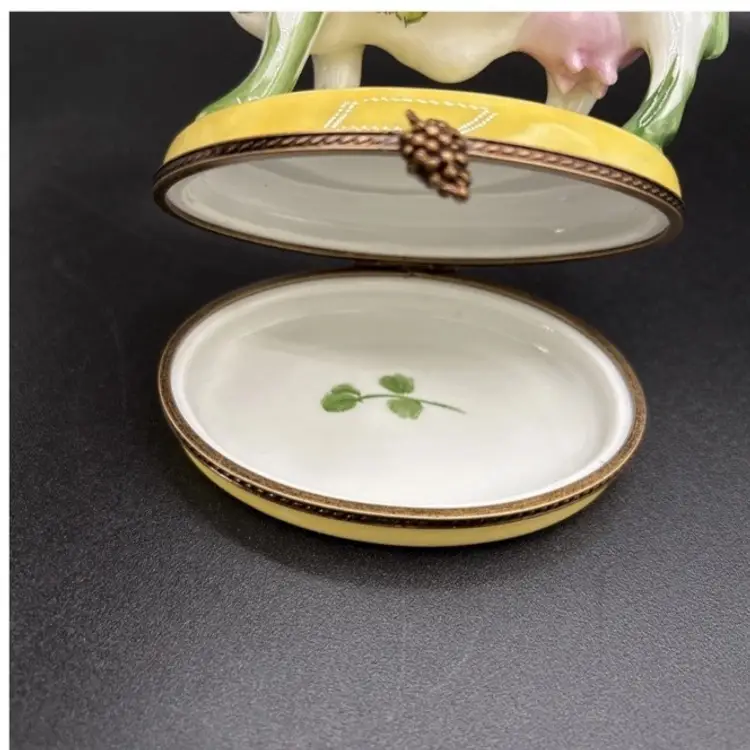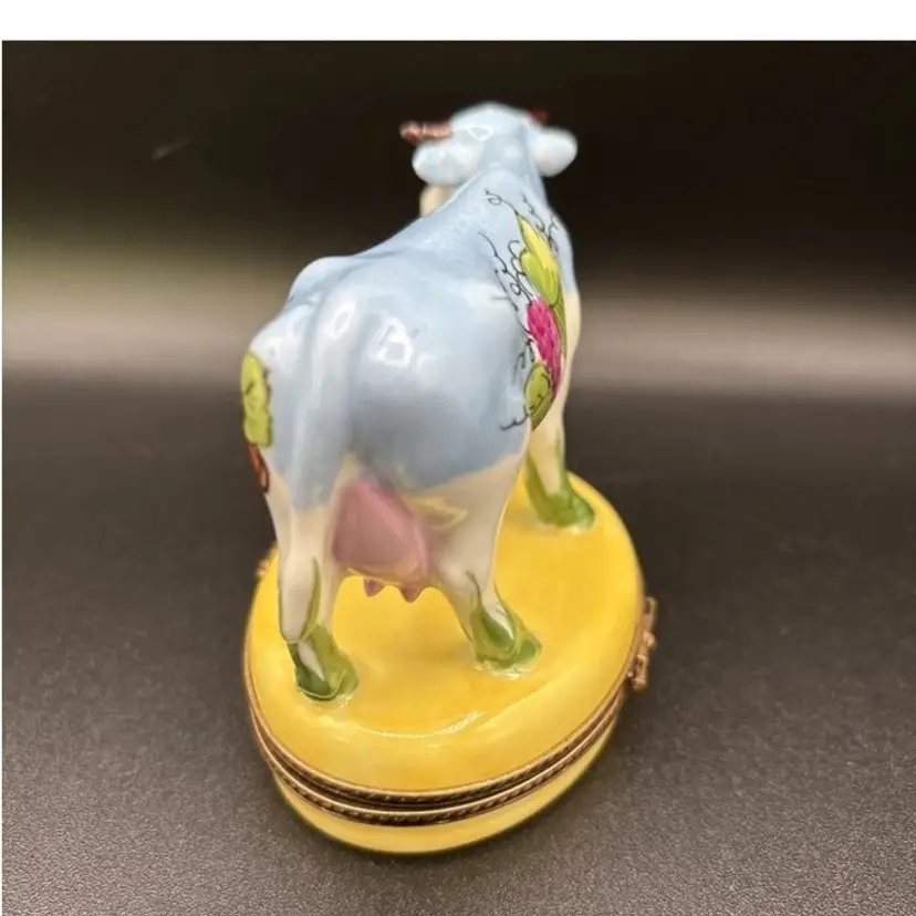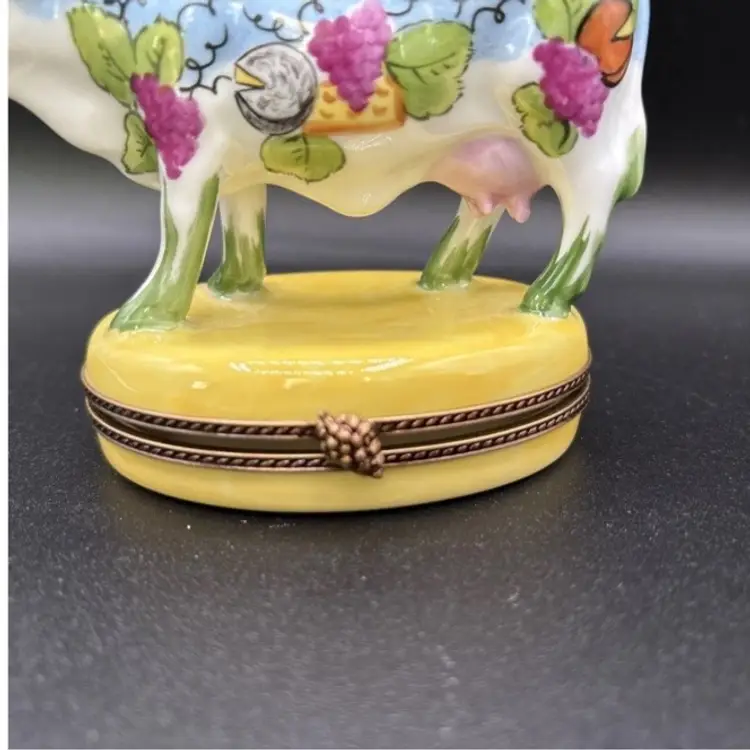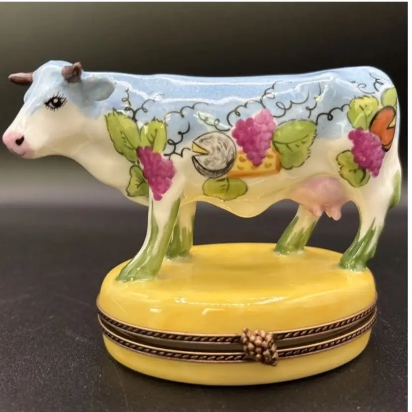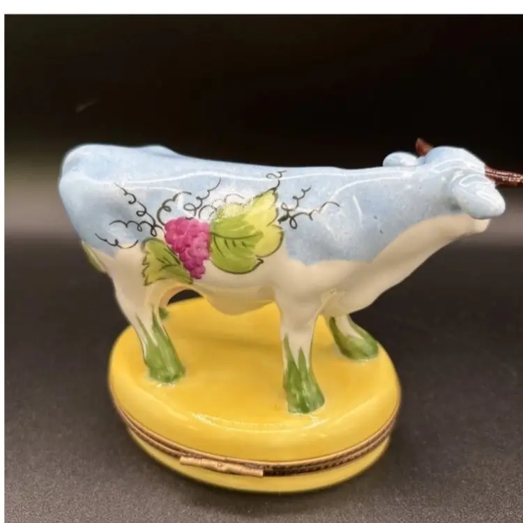 Amazing limited edition Wine and Cheese cow from Limoges France. Great colors. The blue is a bit richer in person.