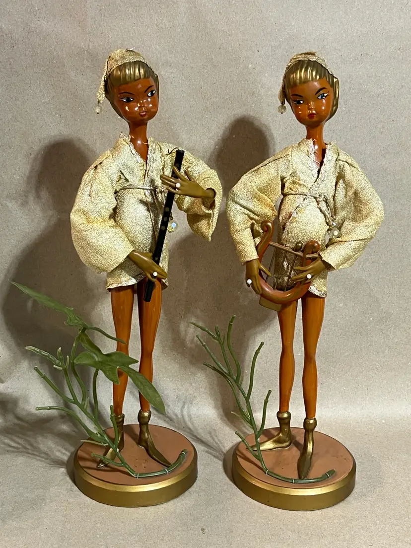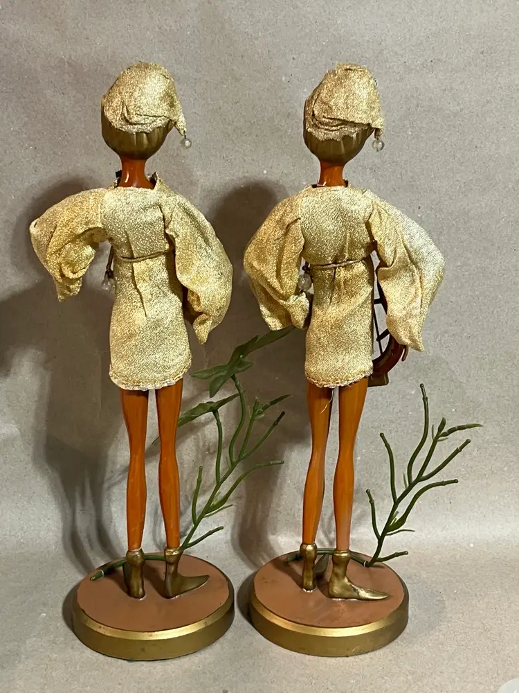 RARE Pair of Vintage Tilso Pixie Elves musicians Standing 17” Mid Century Modern. Good overall condition their outfits are very thin material there are a couple tears in material.