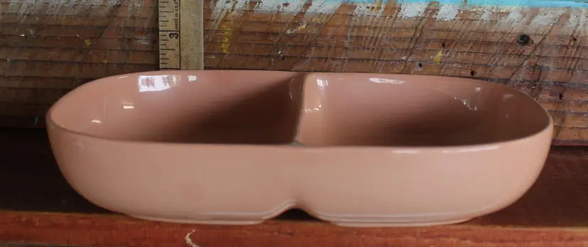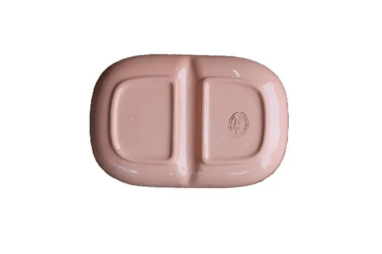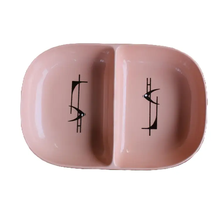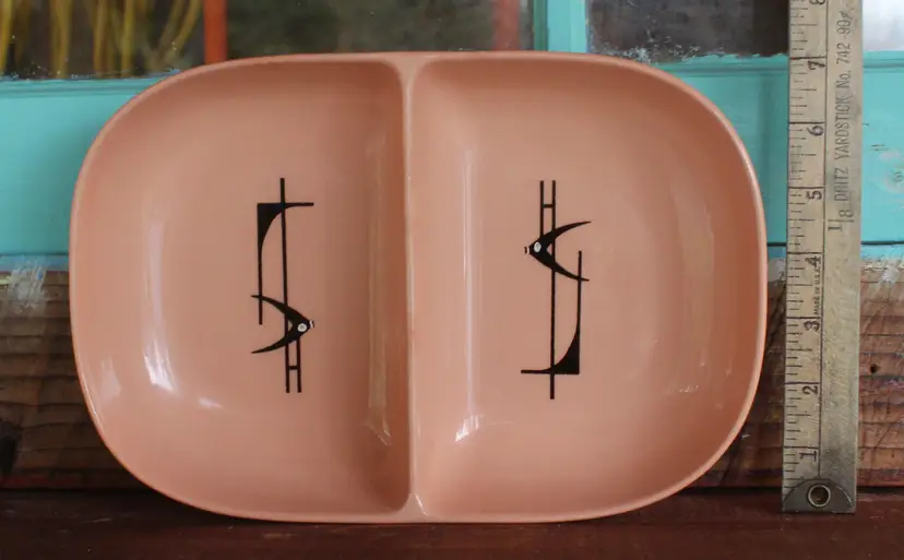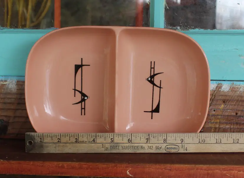 🌸 Rectangular Divided Vegetable Bowl California Fantasy Santa Anita 10"x 7"x 2". I can not find another one like it. This was an estate sale find. Excellent preowned condition No cracks, chips or repairs. Very light if any wear. Its gorgeous. Description: Black Geometric, Coupe, Smooth, No Trim Pattern: California Fantasy by Santa Anita Status: Discontinued.🌸