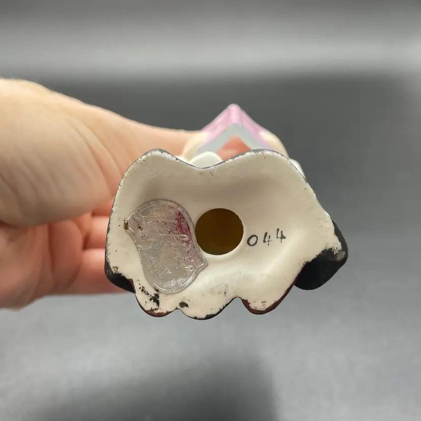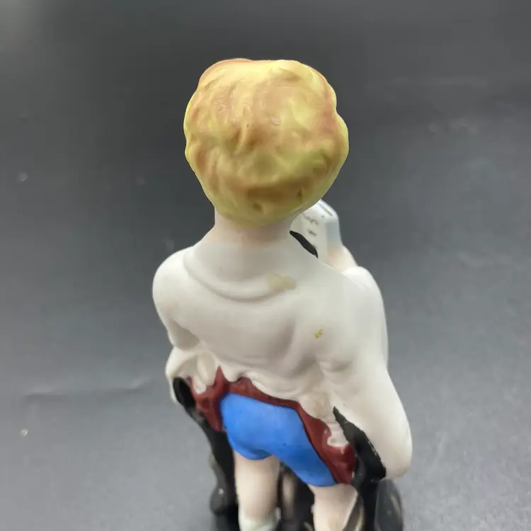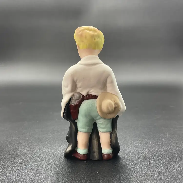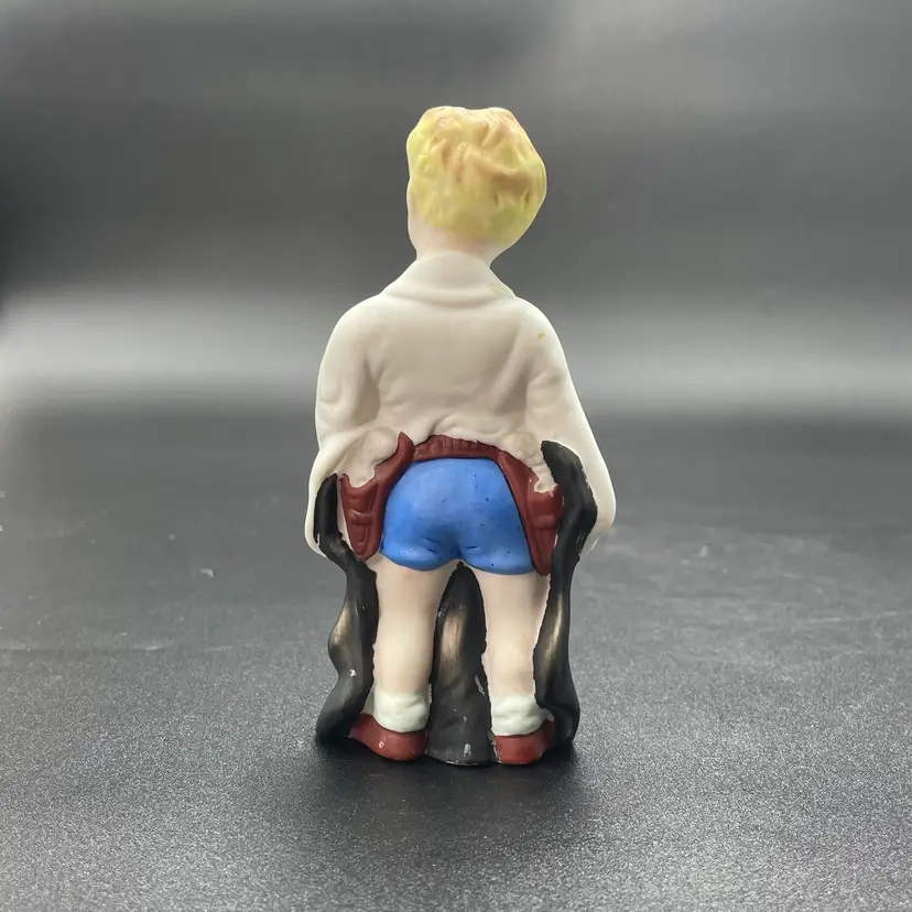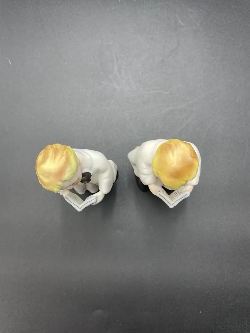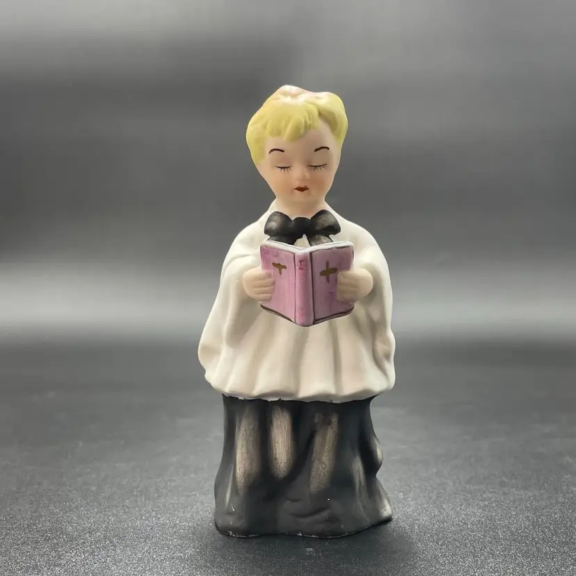 This is a set of 2 rare vintage Lefton #044 double sided figurines depicting choir boys. Their fronts show them in robes while their backs show what's underneath....cowboy hats and holsters! One of the boys still has his original Lefton label. Each measures approximately 5" tall. Picture 6 shows a little staining on the back shoulder of one. No chips or cracks.