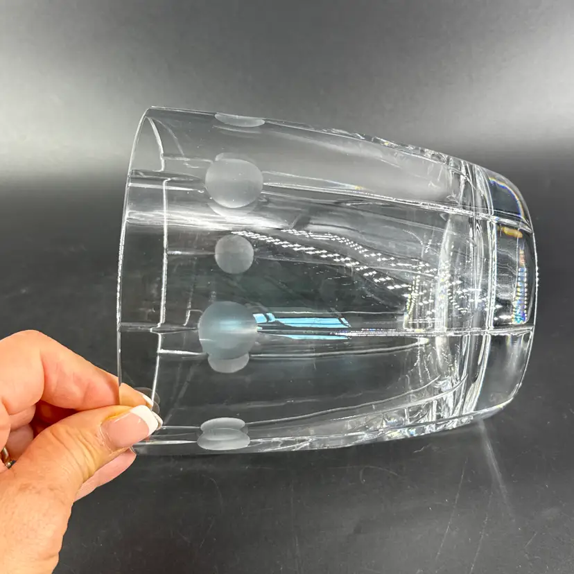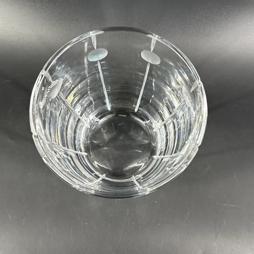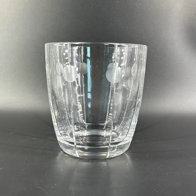 I cannot find a listing nor a sale of this Movado ice bucket. It is 6" tall and measures 5.75" in diameter at its widest. It is in excellent condition. There are no cracks, breaks, chips or repairs. (See photos).