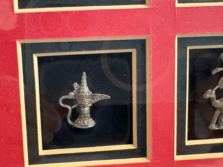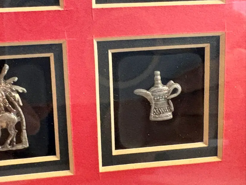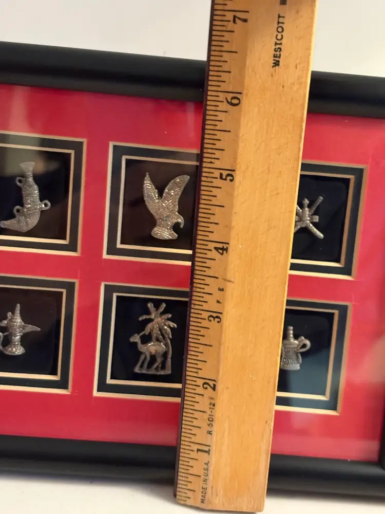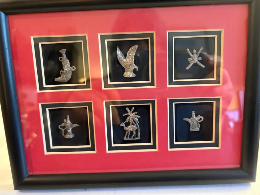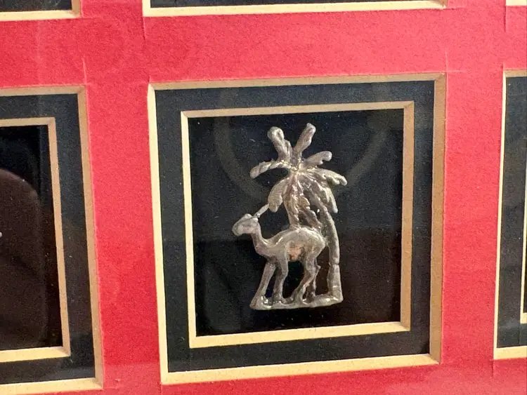 Framed collection of miniature Arabian sculptures made of 925 sterling silver.