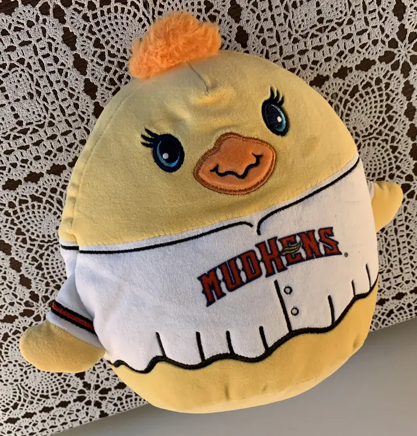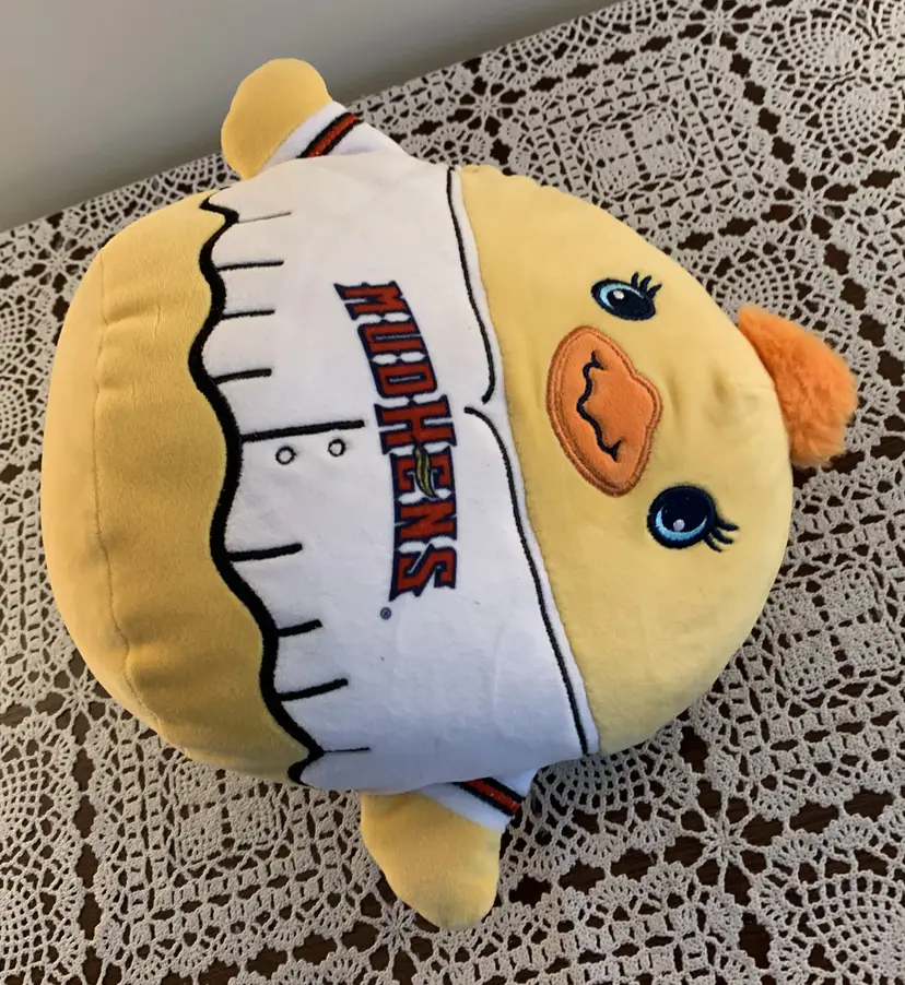 Rare Toledo Mud Hens Muddonna Squishmallow Type Plush. The toy measures approximately 9" in size. The item is in good pre-owned condition with no rips, tears, or stains. Please refer to the photos a they are part of the item description. The original seam tags are still attached. This is a Unique Minor League Baseball Collectible.
